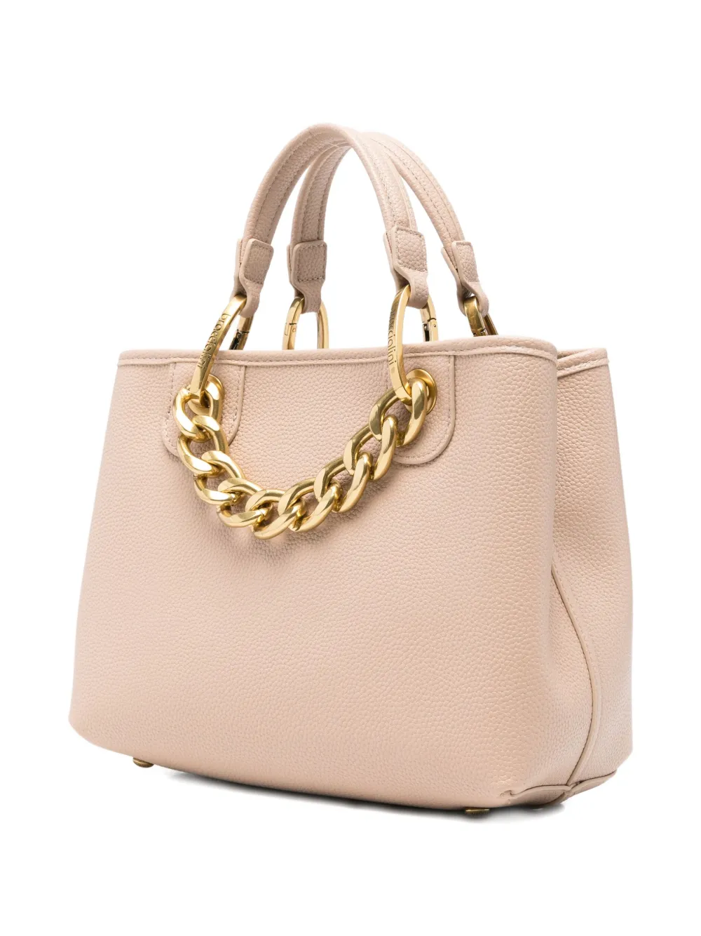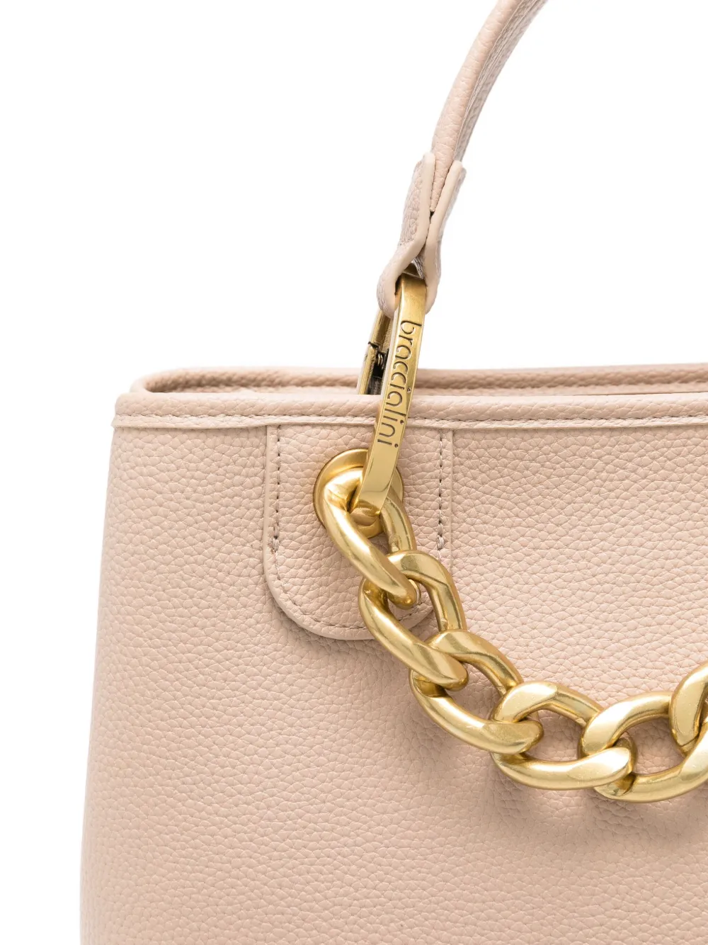 Припудренно-бежевый кожа фактурная отделка декор из цепочки верхние ручки съемный плечевой ремень фурнитура цвета золота