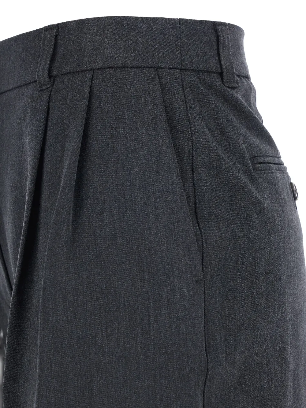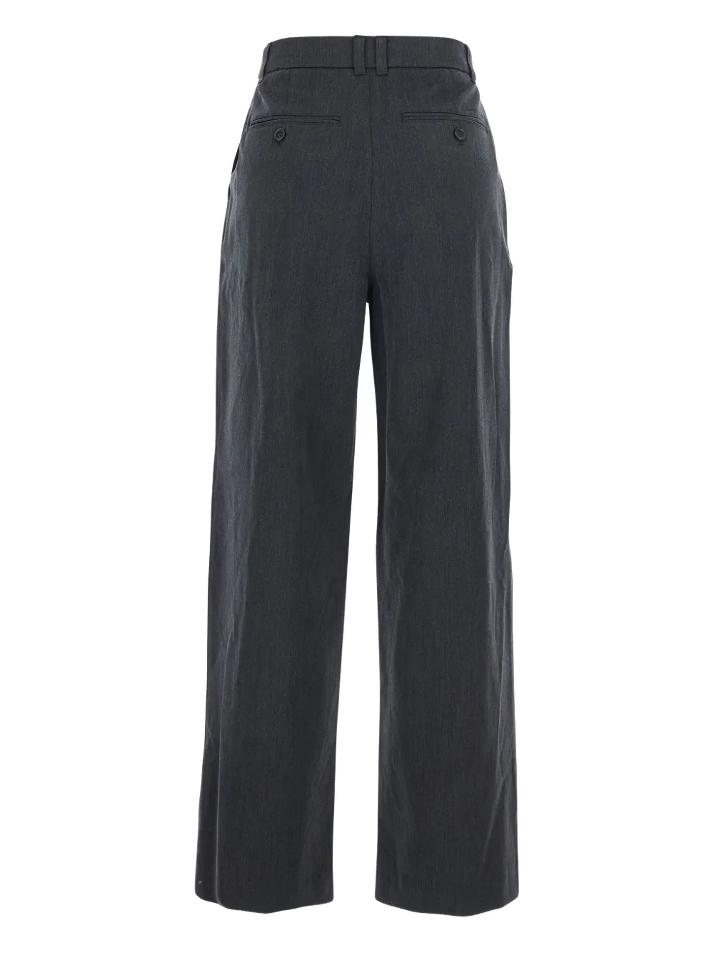 Серый передние складки скрытая застежка спереди задние прорезные карманы широкие брючины