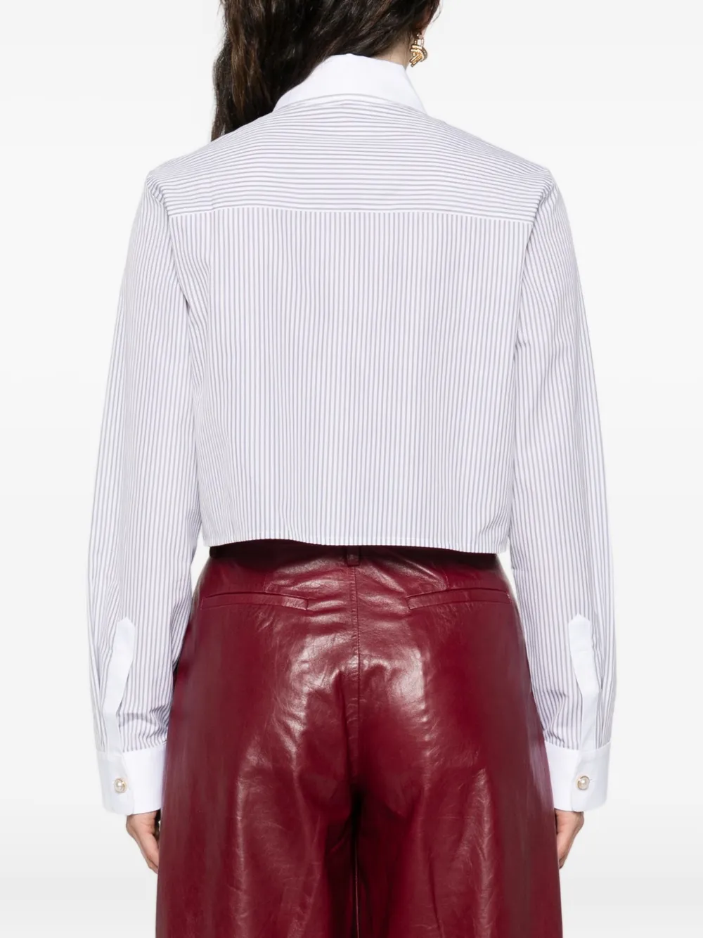 Белый в полоску вышитый логотип классический воротник длинные рукава скрытая застежка на пуговицы спереди