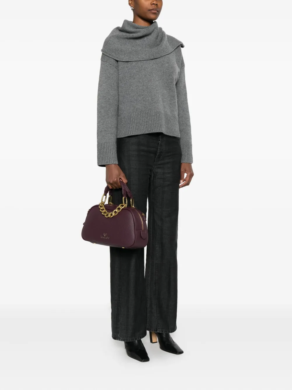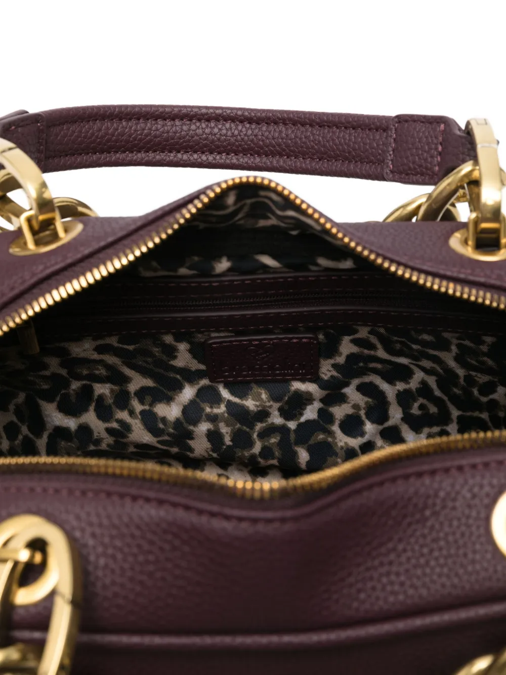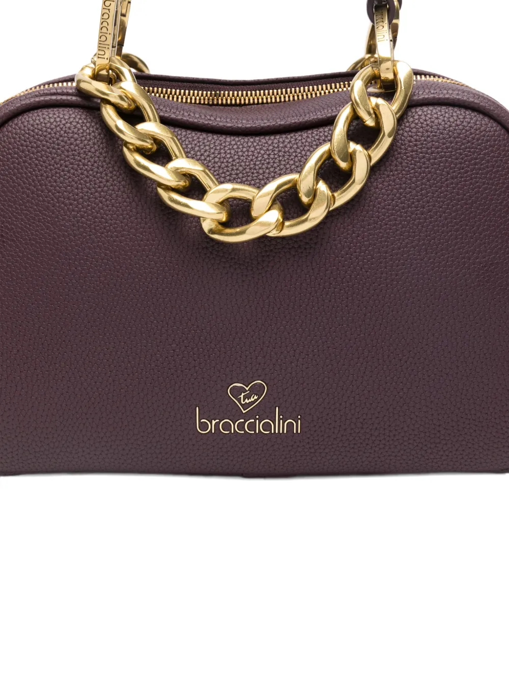 Фиолетовый декор из цепочки две верхние ручки застежка-молния сверху деталь с логотипом