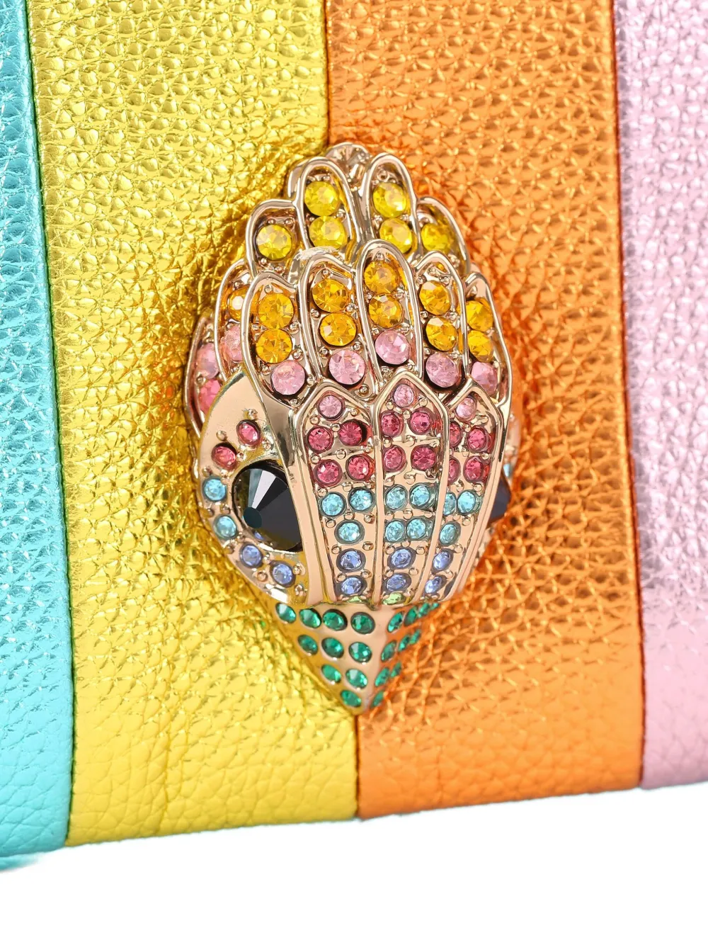 Желтый зернистая кожа фурнитура цвета золота декор в виде головы орла деталь в виде цепочки застежка на молнии