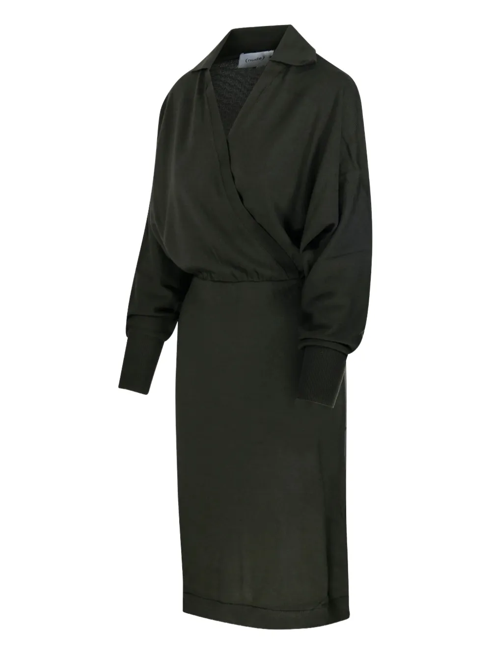 Платье в рубчик с запахом на шее Nude, зеленый