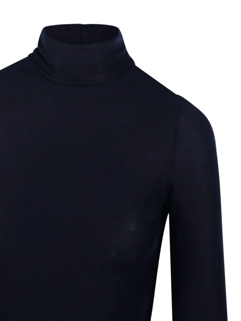 Темно-синий водолазка длинные рукава облегающий крой прямой подол деталь с логотипом