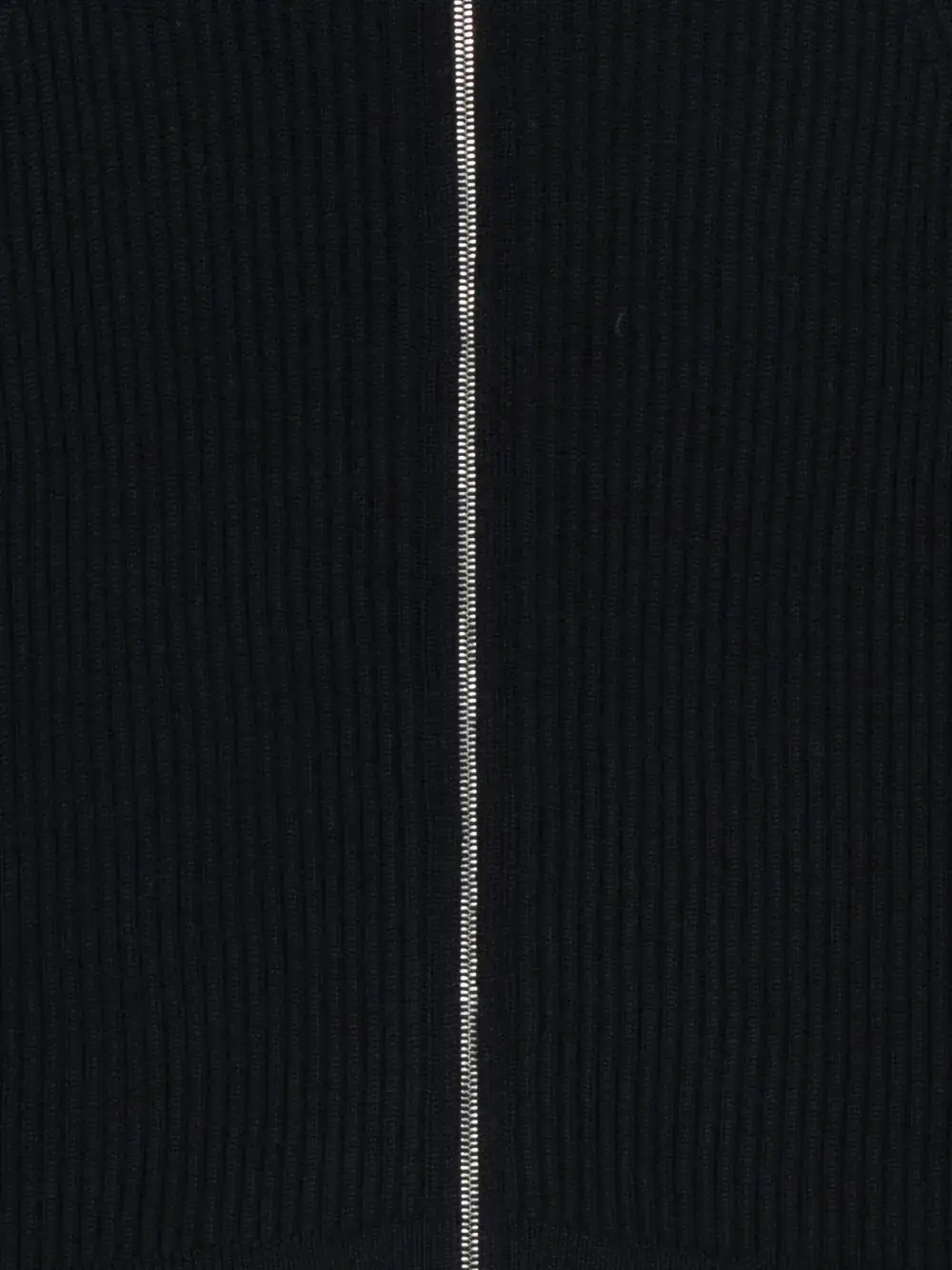 Черный вязаный пуловер в рубчик на молнии с высоким воротом и длинными рукавами