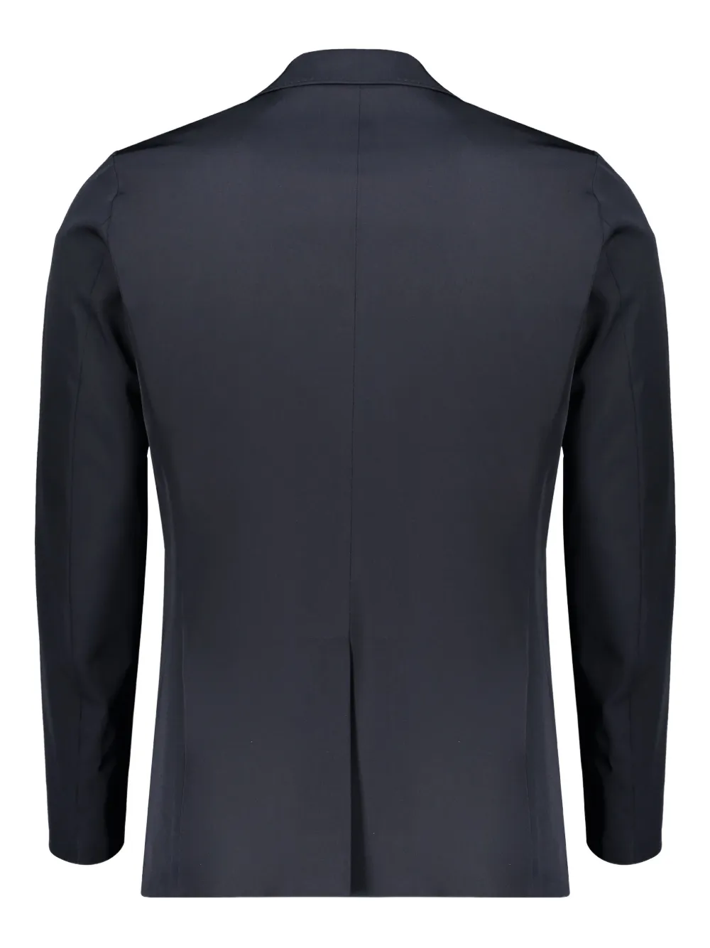 Темно-синий застежка на пуговицы накладные карманы шлиц сзади длинные рукава