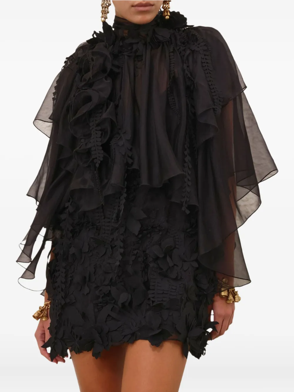 Мини-платье с оборками ZIMMERMANN, черный