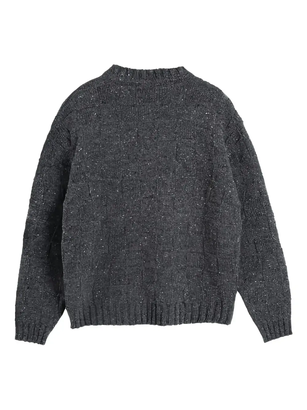Угольно-серый фактурный трикотаж, круглый вырез, длинные рукава, ребристый низ, ребристые манжеты