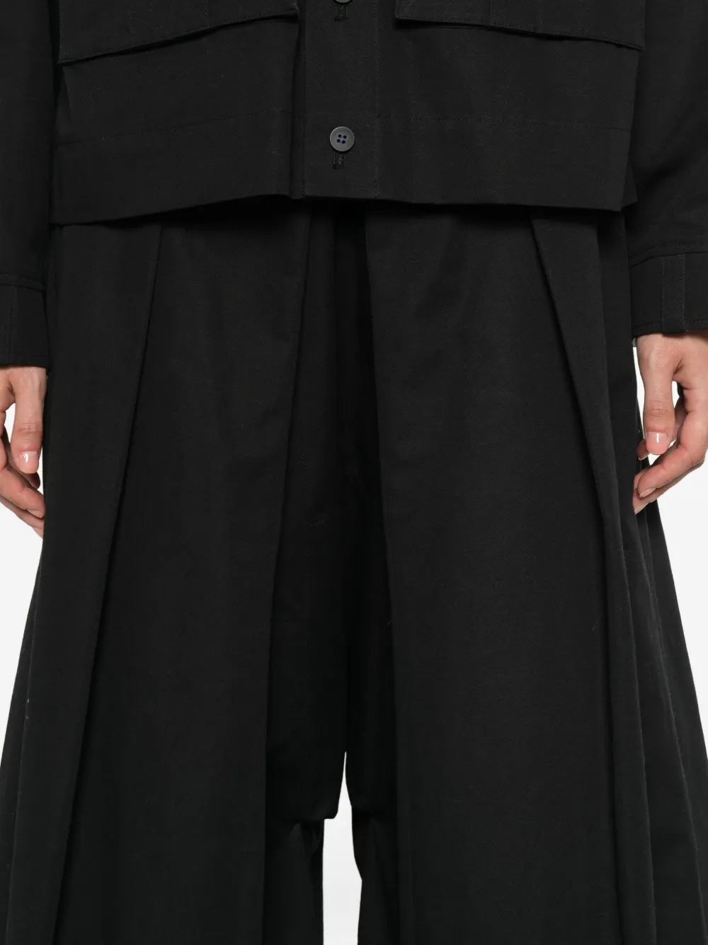 Черный, застежка на пуговицы, складки, шлевки для ремня, силуэт "А-силуэт", средняя посадка