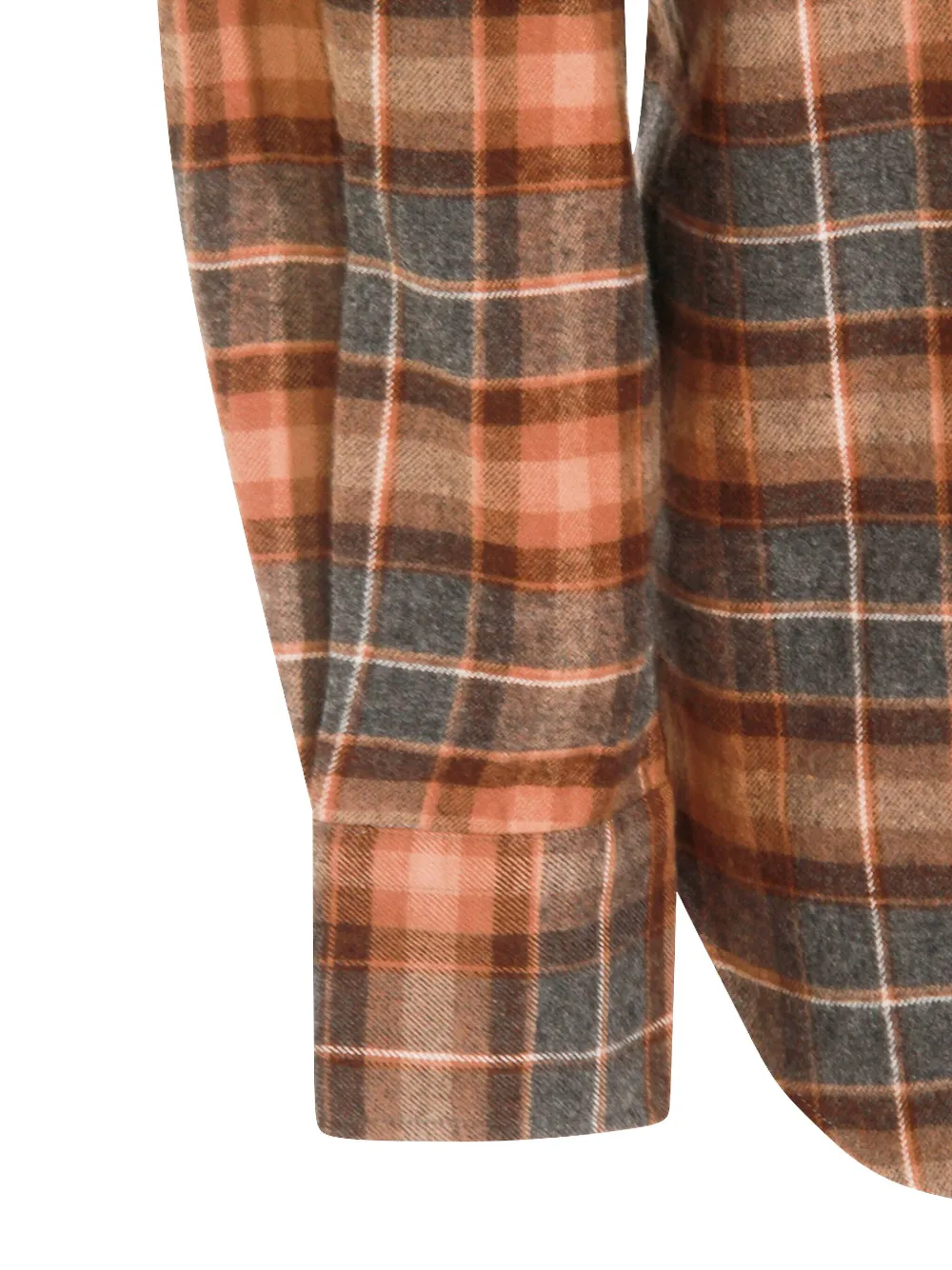 Коричневый клетчатый узор длинные рукава застежка на пуговицы спереди манжеты на пуговицах классический воротник