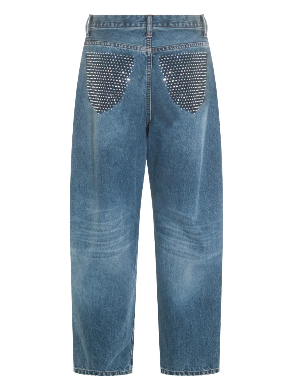 Синий кристаллический декор задние карманы деталь с логотипом застежка на пуговицу пять карманов