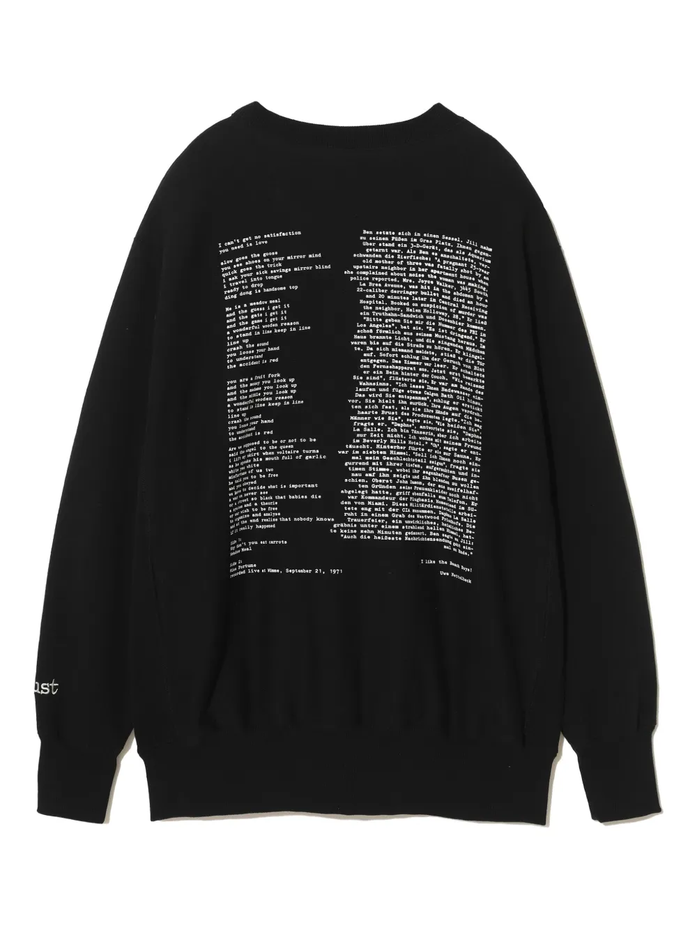 Черный хлопок графический принт на груди круглый вырез длинные рукава эластичные манжеты и низ
