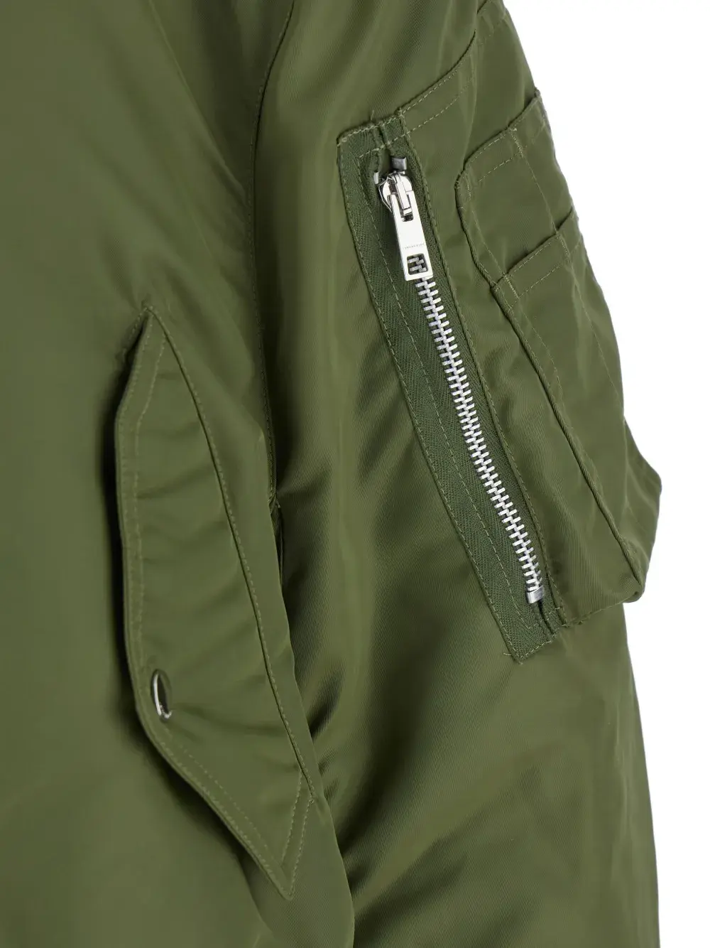 Оливково-зеленый цвет, стеганый дизайн, застежка-молния, боковые карманы, ребристый нижний край, ребристые манжеты