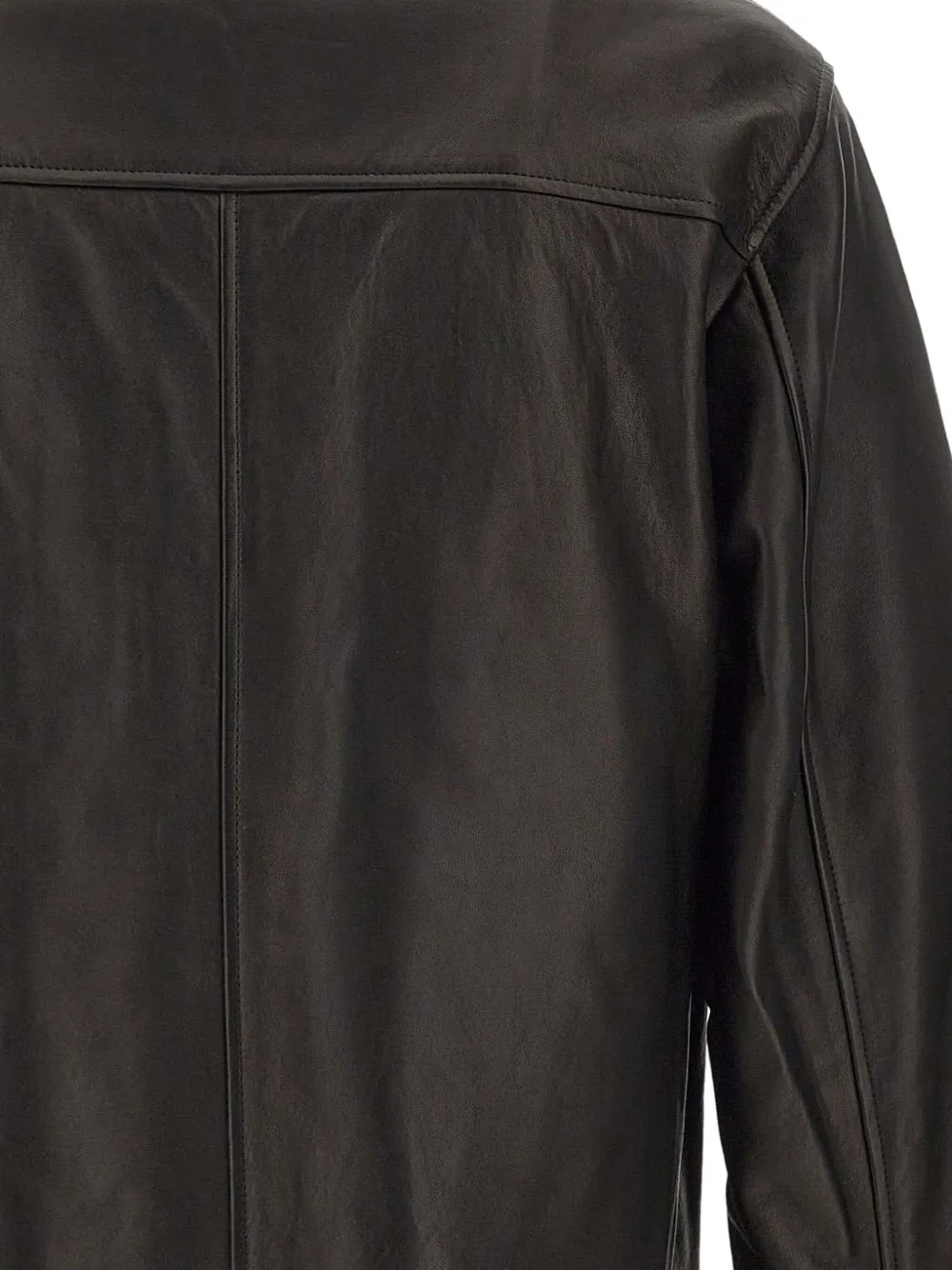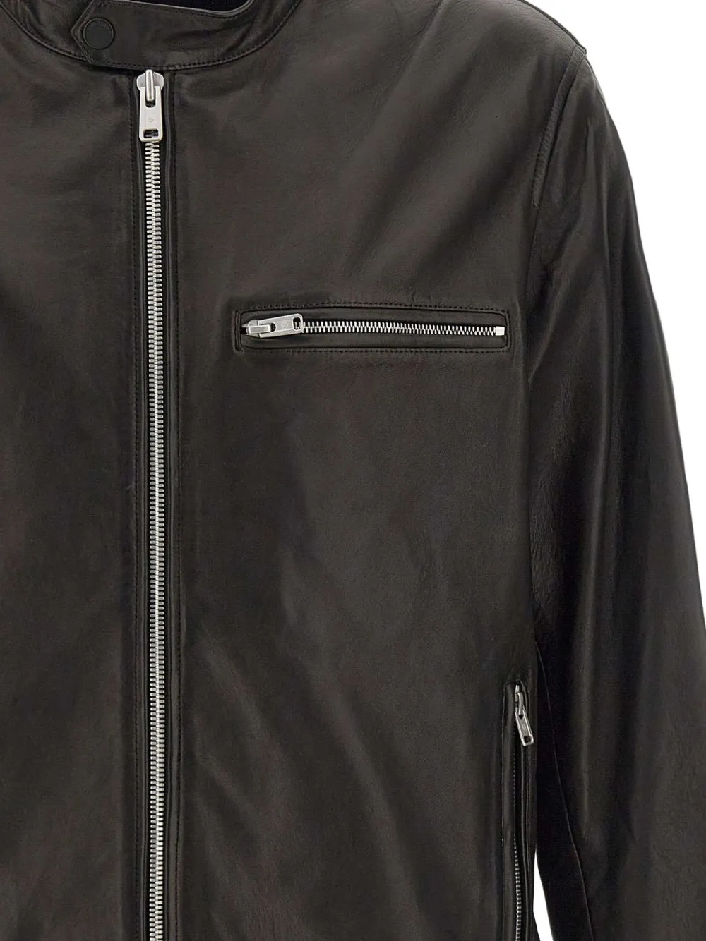 Черный кожа застежка-молния спереди нагрудный карман на молнии боковые карманы на молнии длинные рукава