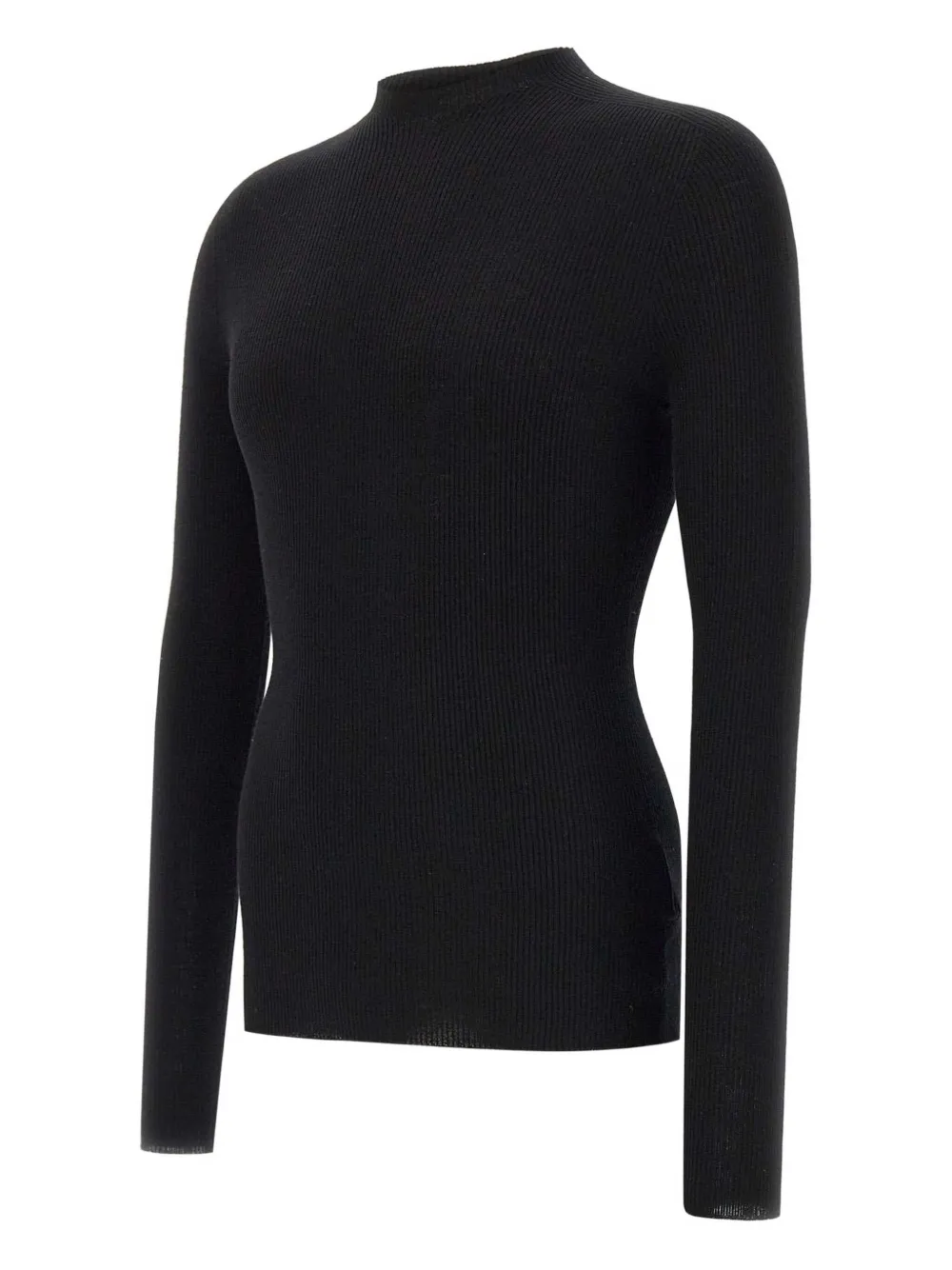 Черный вязаный гольф с высоким воротом, длинными рукавами, из шерсти