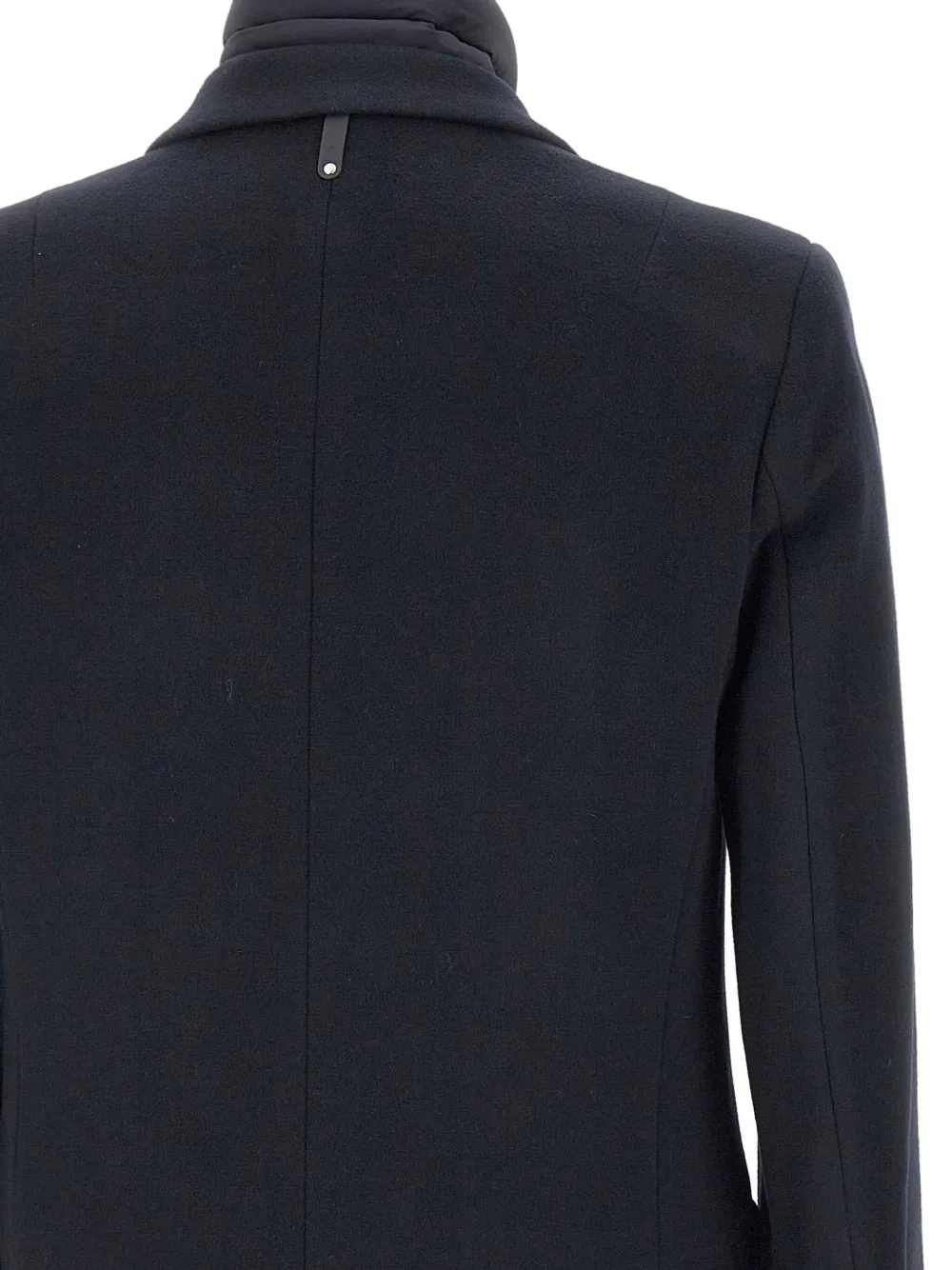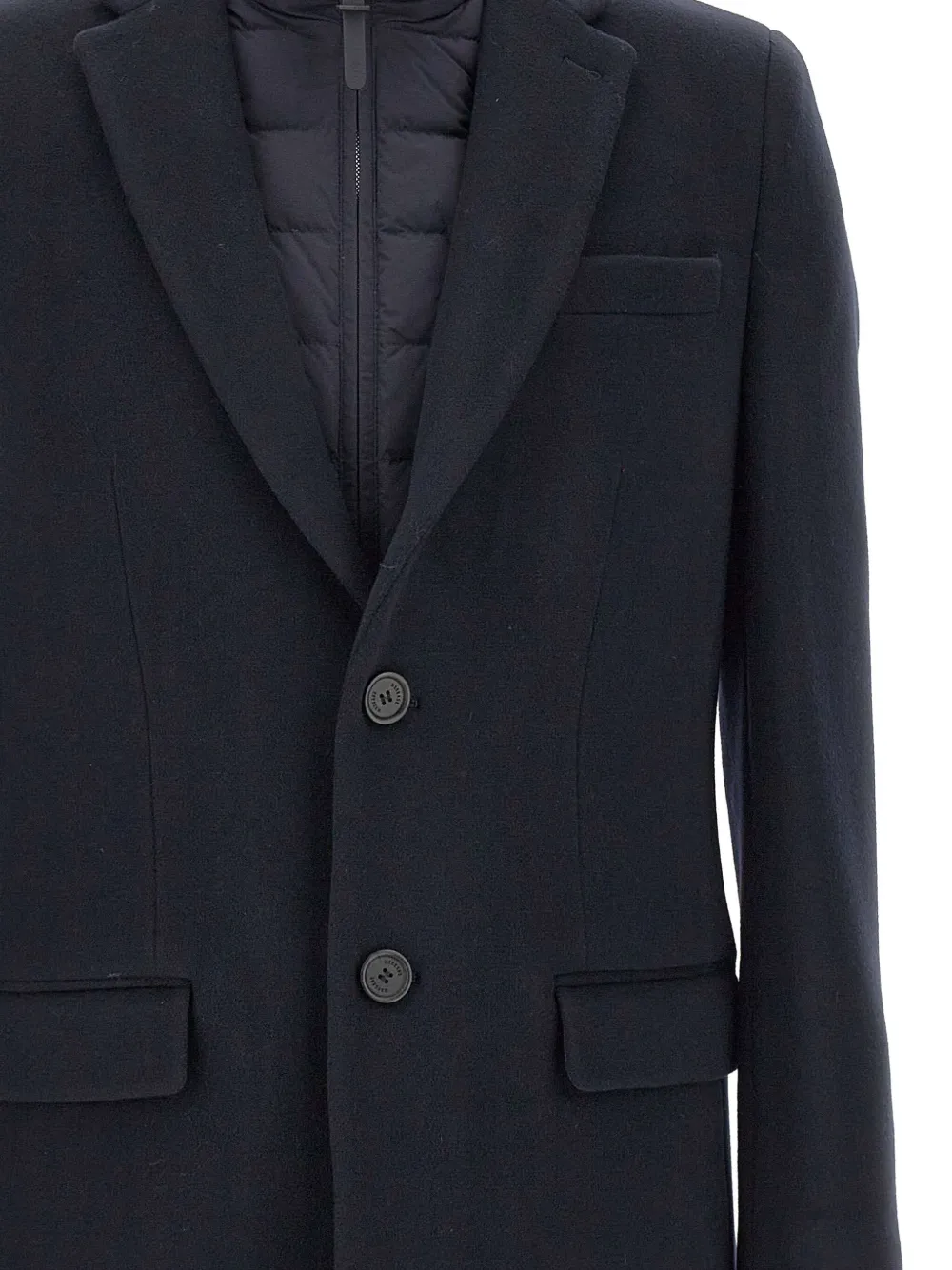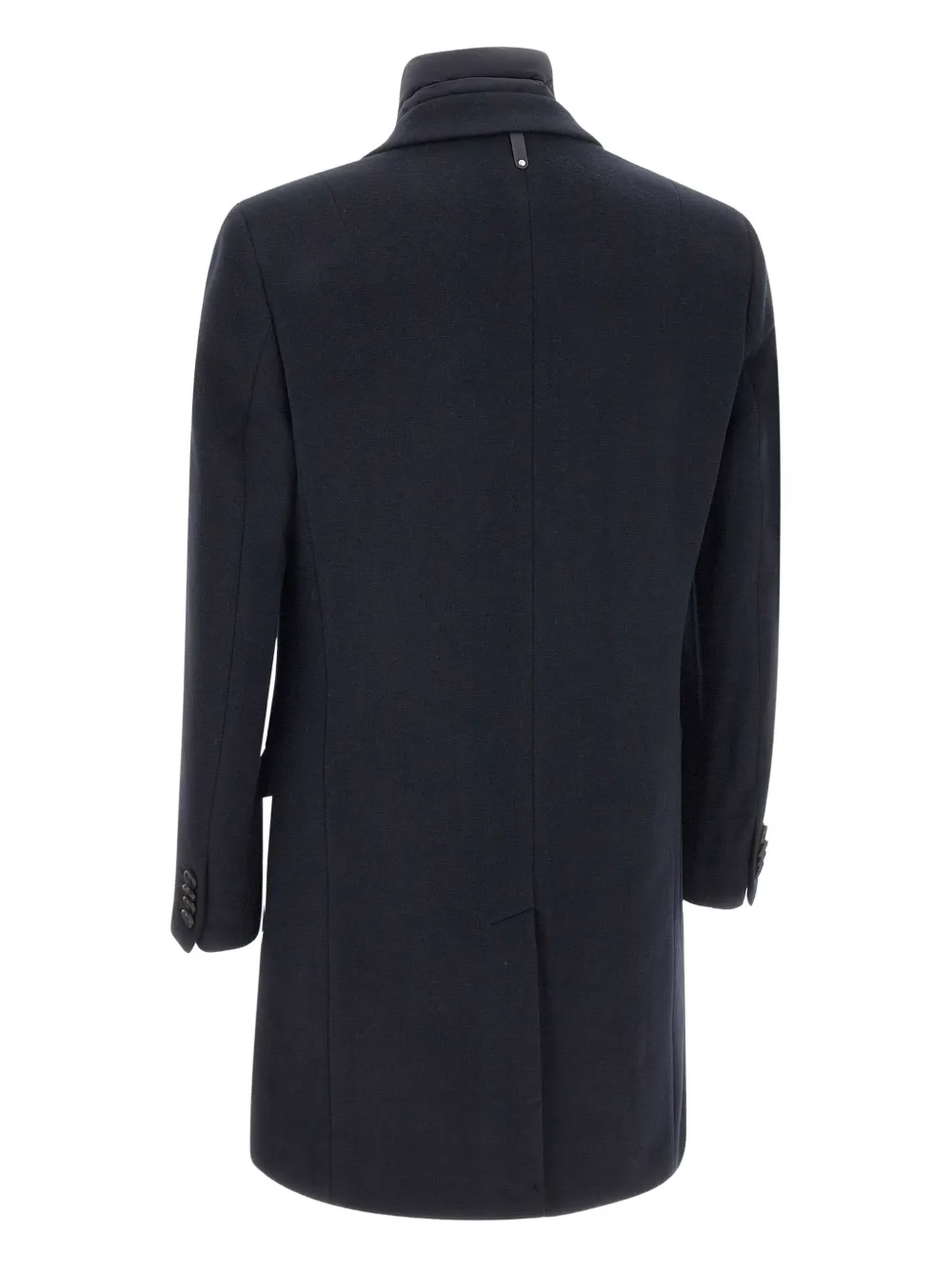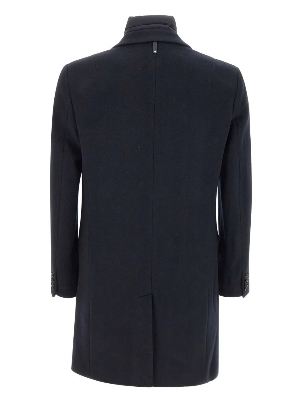 Темно-синий шерсть застежка на пуговицы спереди накладные карманы спереди с клапанами центральная шлица сзади