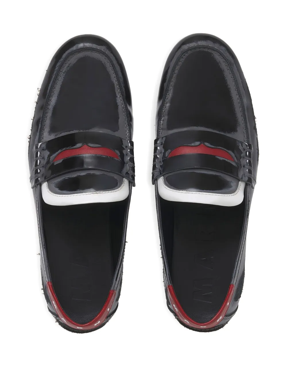 Черная кожаная ручная строчка на союзке контрастный разрез на ремешке пенни фирменная петля на пятке нанесенный принт логотип