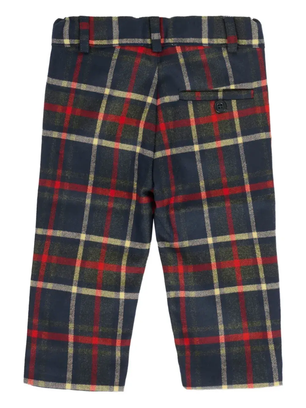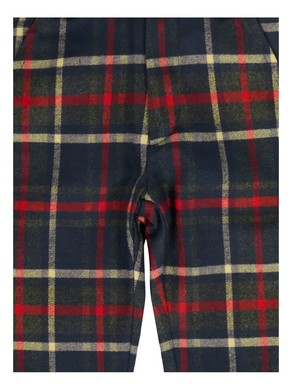 Синий клетчатый узор два боковых кармана застежка на пуговицах прямые брючины