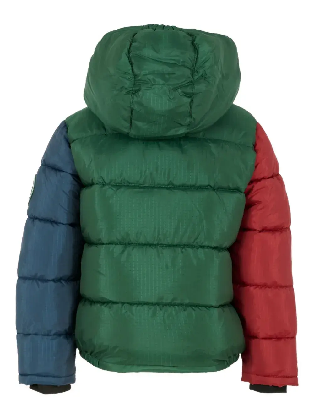Зеленый цветной дизайн с блоками цветов, логотип, капюшон, застежка-молния спереди, длинные рукава