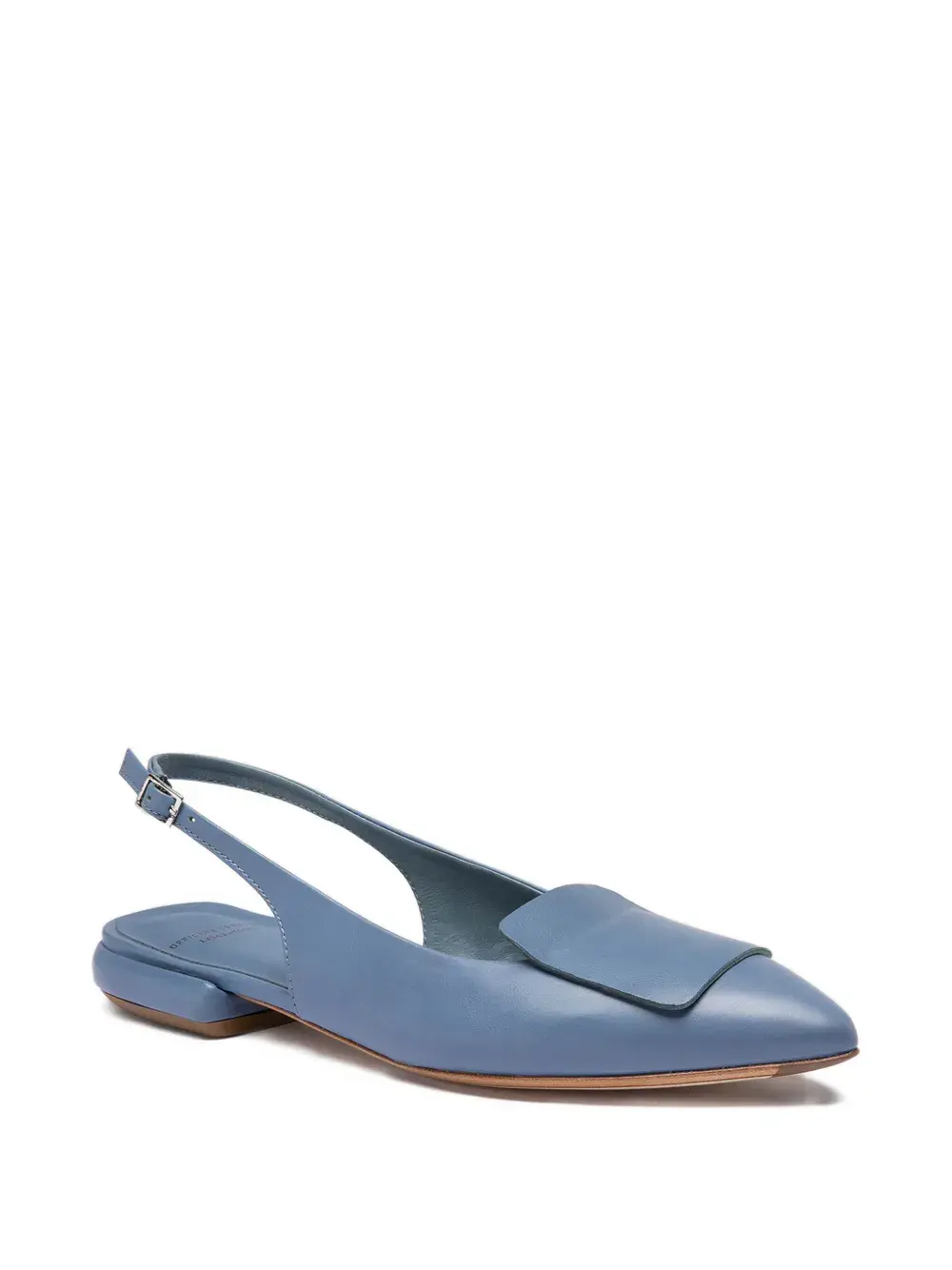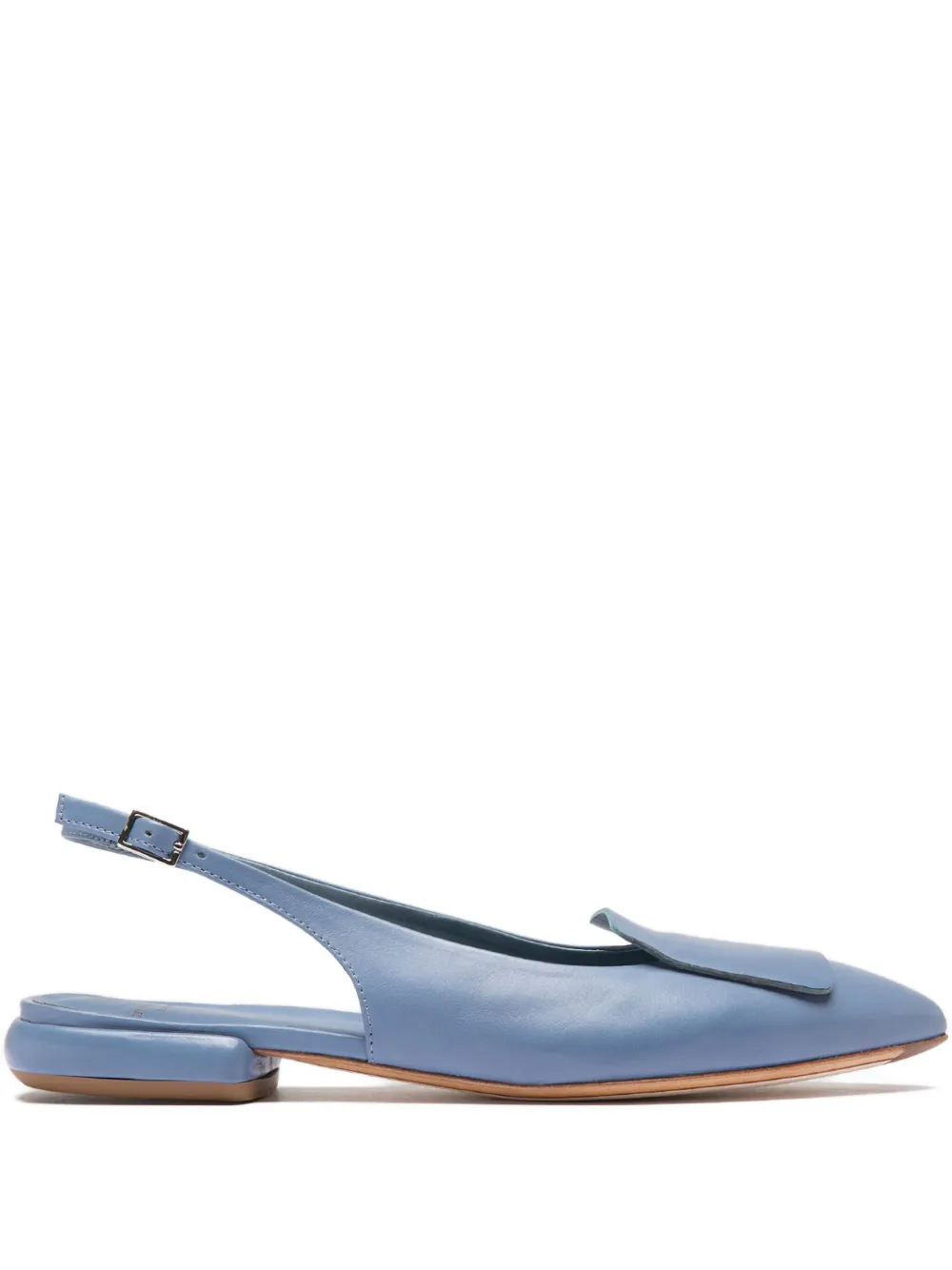 Синие туфли с заостренным носком и застежкой-пряжкой