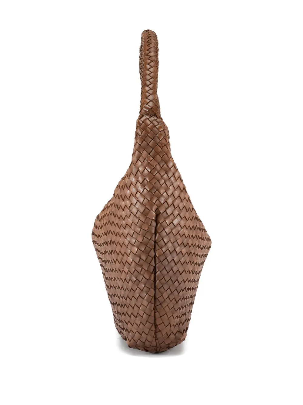 Коричневая плетеная сумка с верхней ручкой и застежкой-молнией наверху