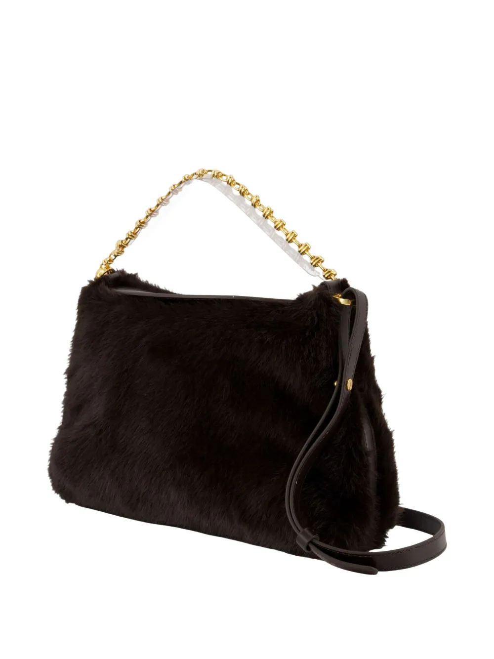 Коричневый фактура под мех цепочный ремешок кожаный ремешок застежка-клапан