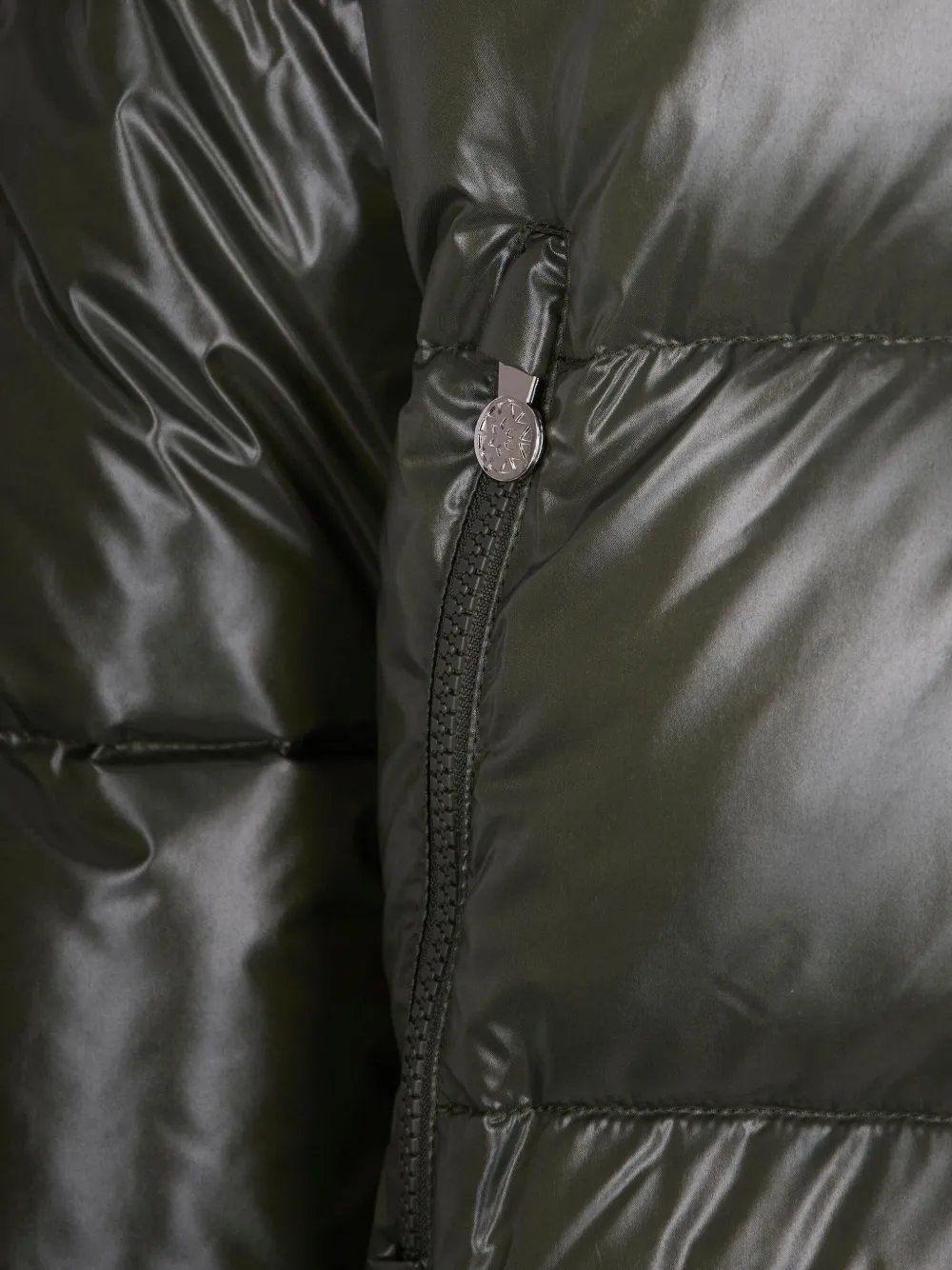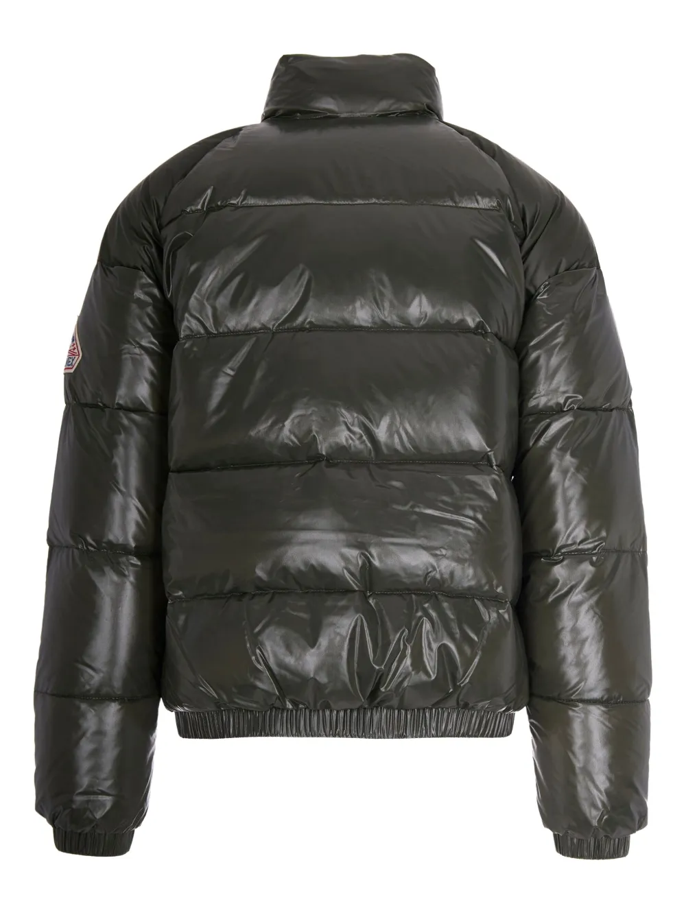 Темно-зеленый стеганый дизайн высокий воротник застежка-молния спереди два боковых кармана на молнии