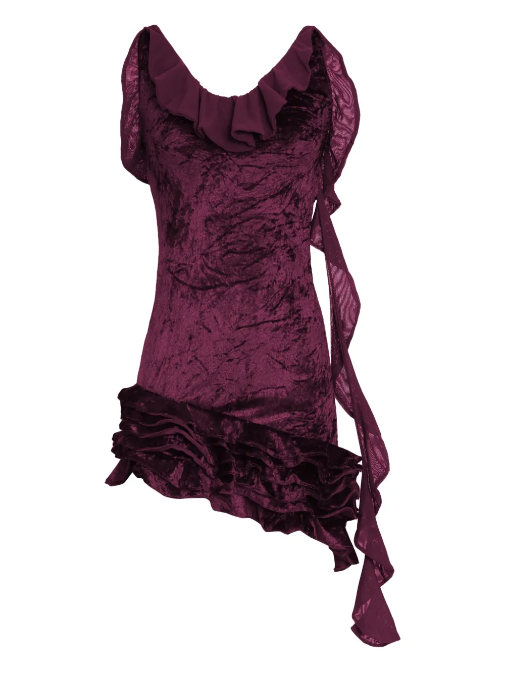 Бордовый топ без рукавов с оборками, регулируемыми бретелями и поясом