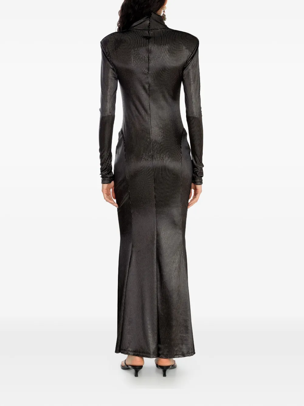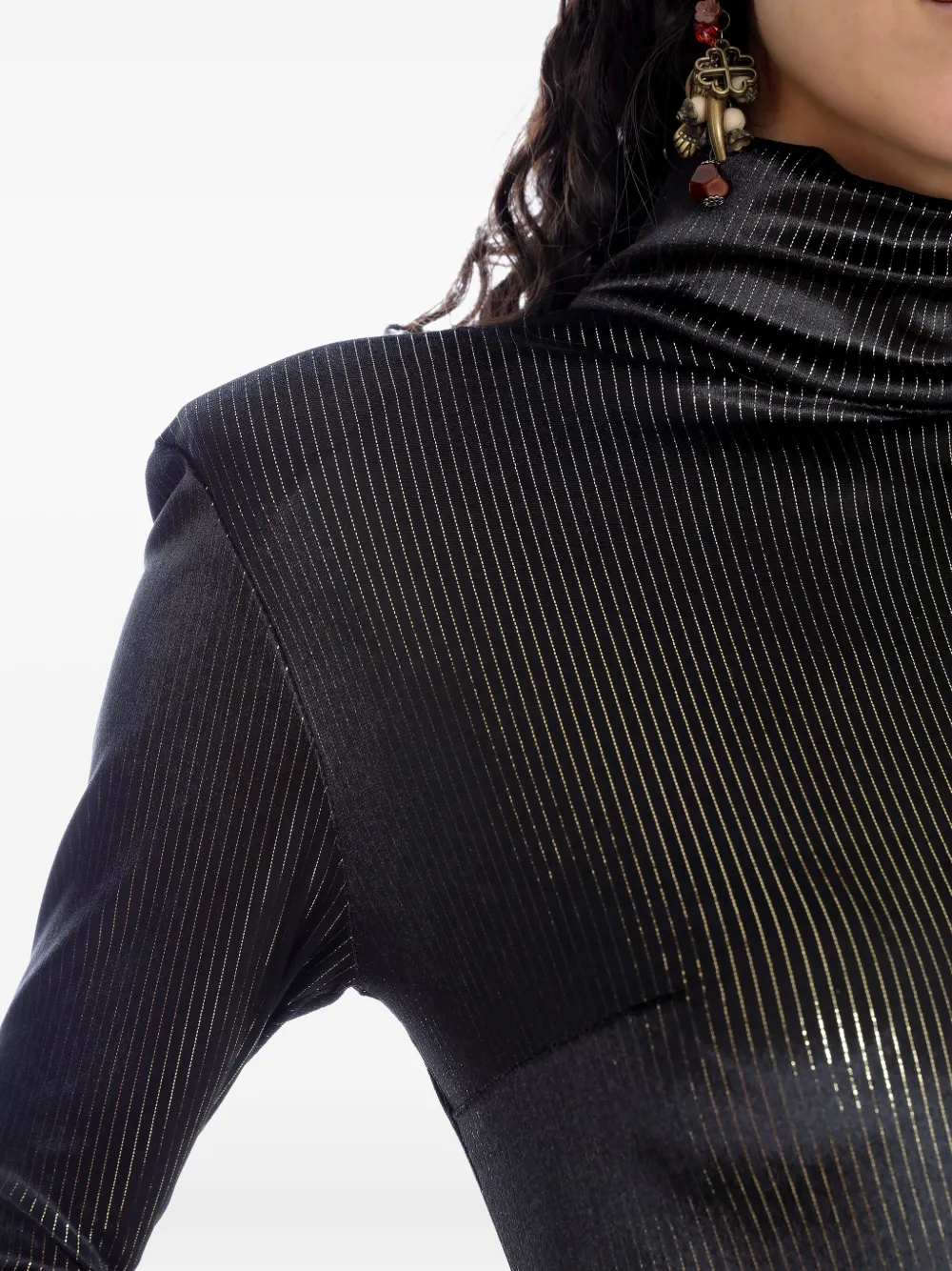 Черные вертикальные полосы, длинные рукава, высокий воротник, застежка-молния сзади
