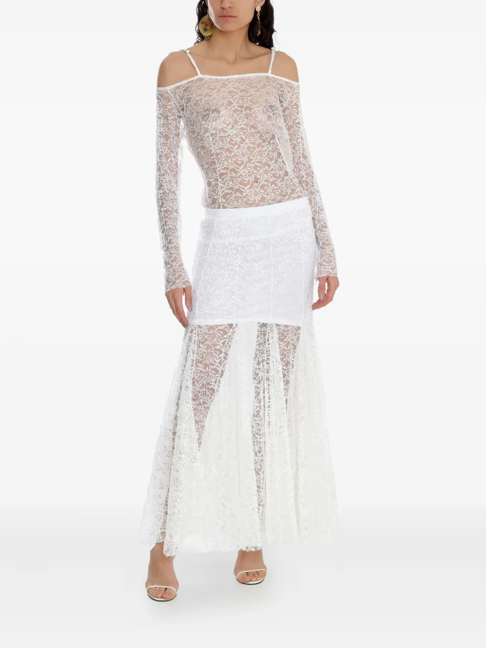 Белый кружевной дизайн, бретели на плечах, длинные рукава, открытые плечи