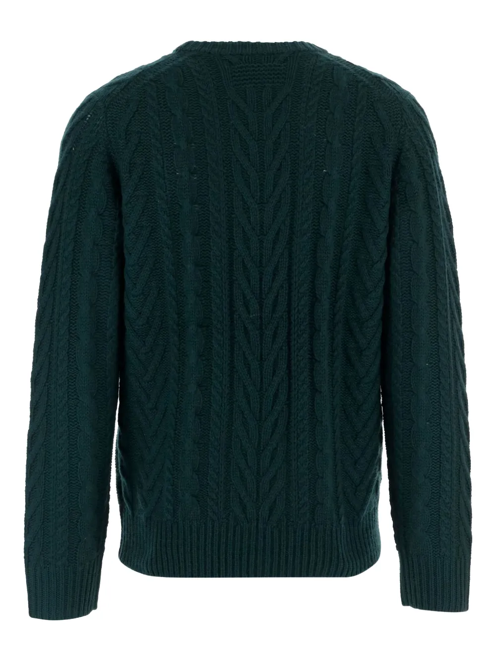 Зеленый кашемир вязаный косичкой круглый вырез длинные рукава рубчатые манжеты и низ