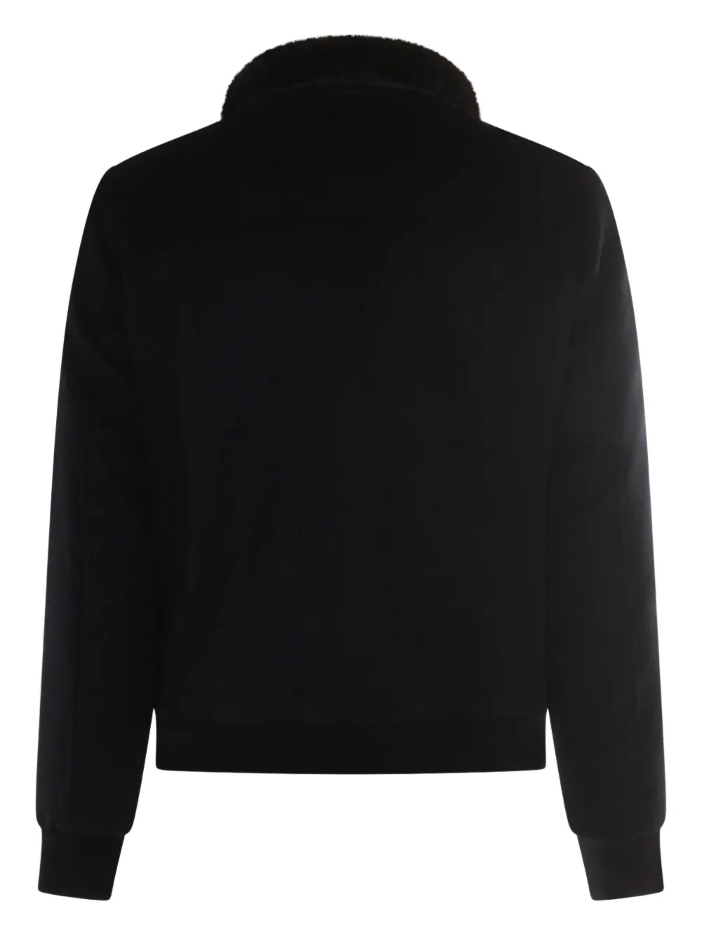 Темно-синий застежка-молния спереди рубчатый низ воротник из искусственного меха прорезные карманы длинные рукава
