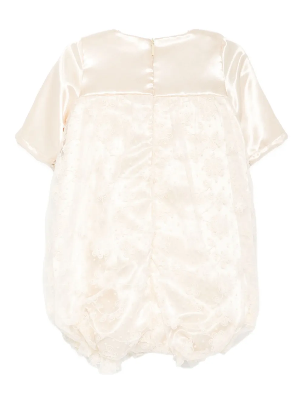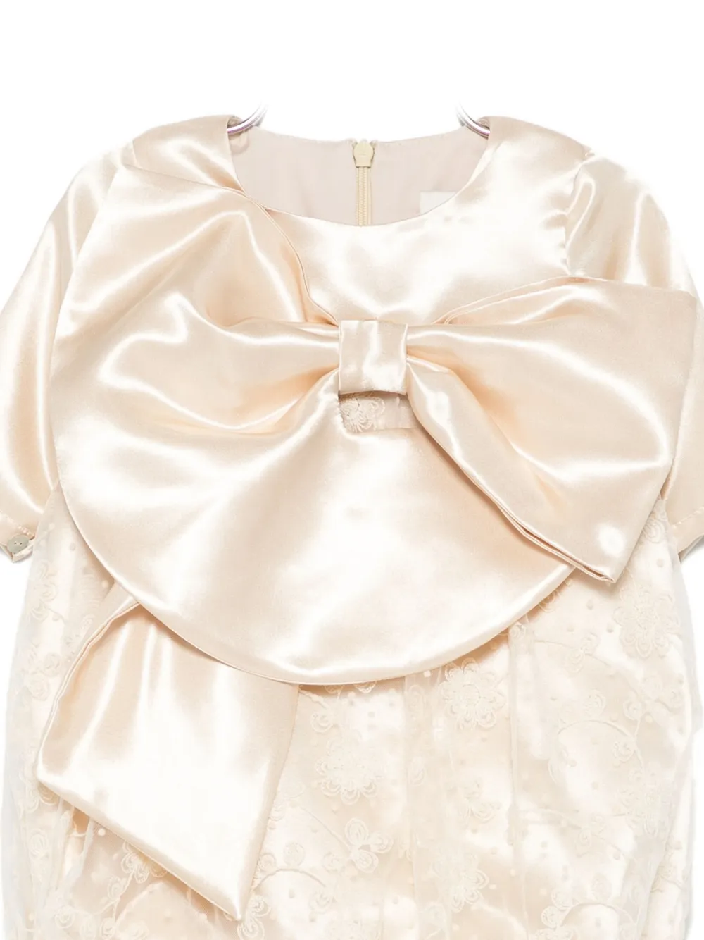 Бежевый отделка кружевом декор бантиком короткие рукава круглый вырез застежка-молния сзади