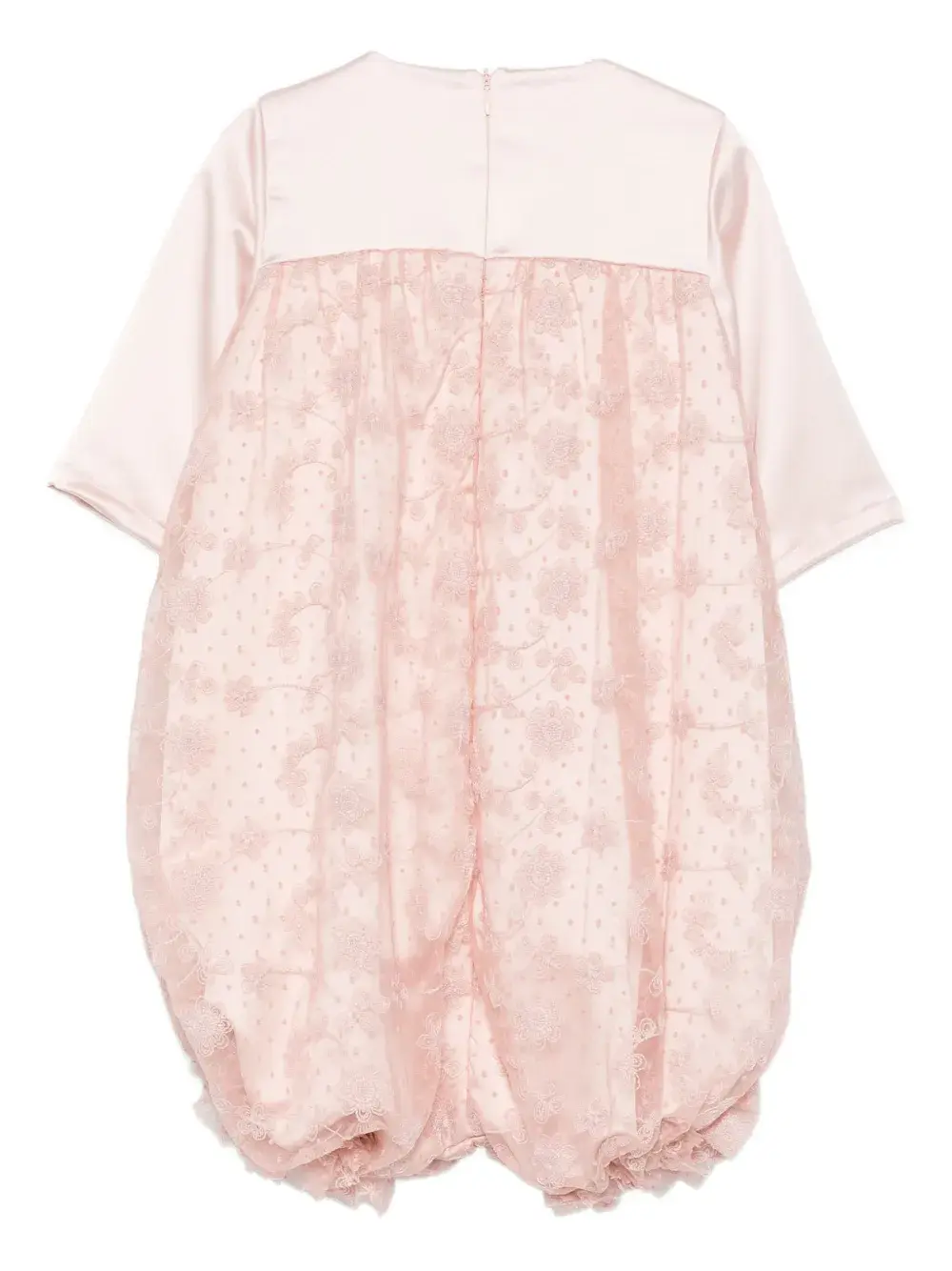 Розовый цветочный узор, бантовый декор, короткие рукава, круглый вырез, застежка-молния сзади