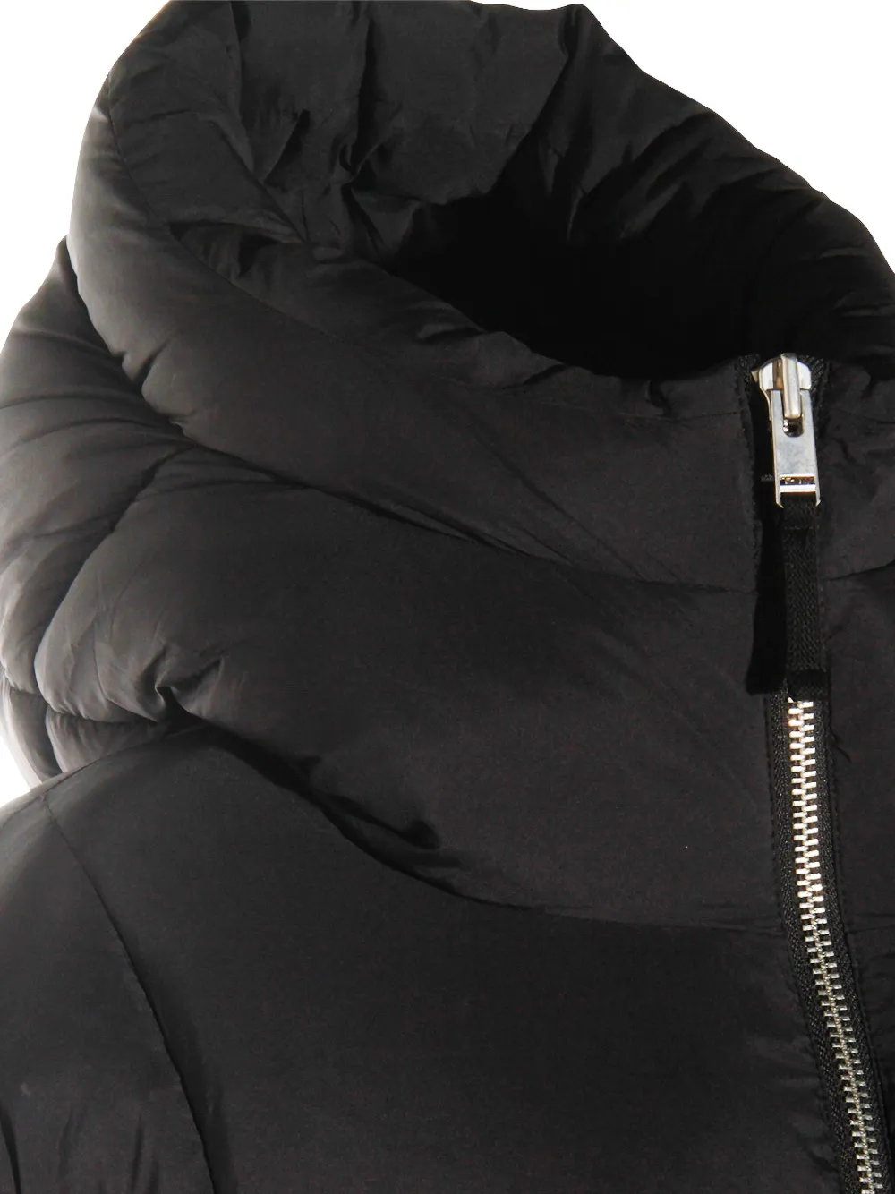Черная стеганая куртка с застежкой на молнию, капюшоном, длинными рукавами и трикотажными манжетами