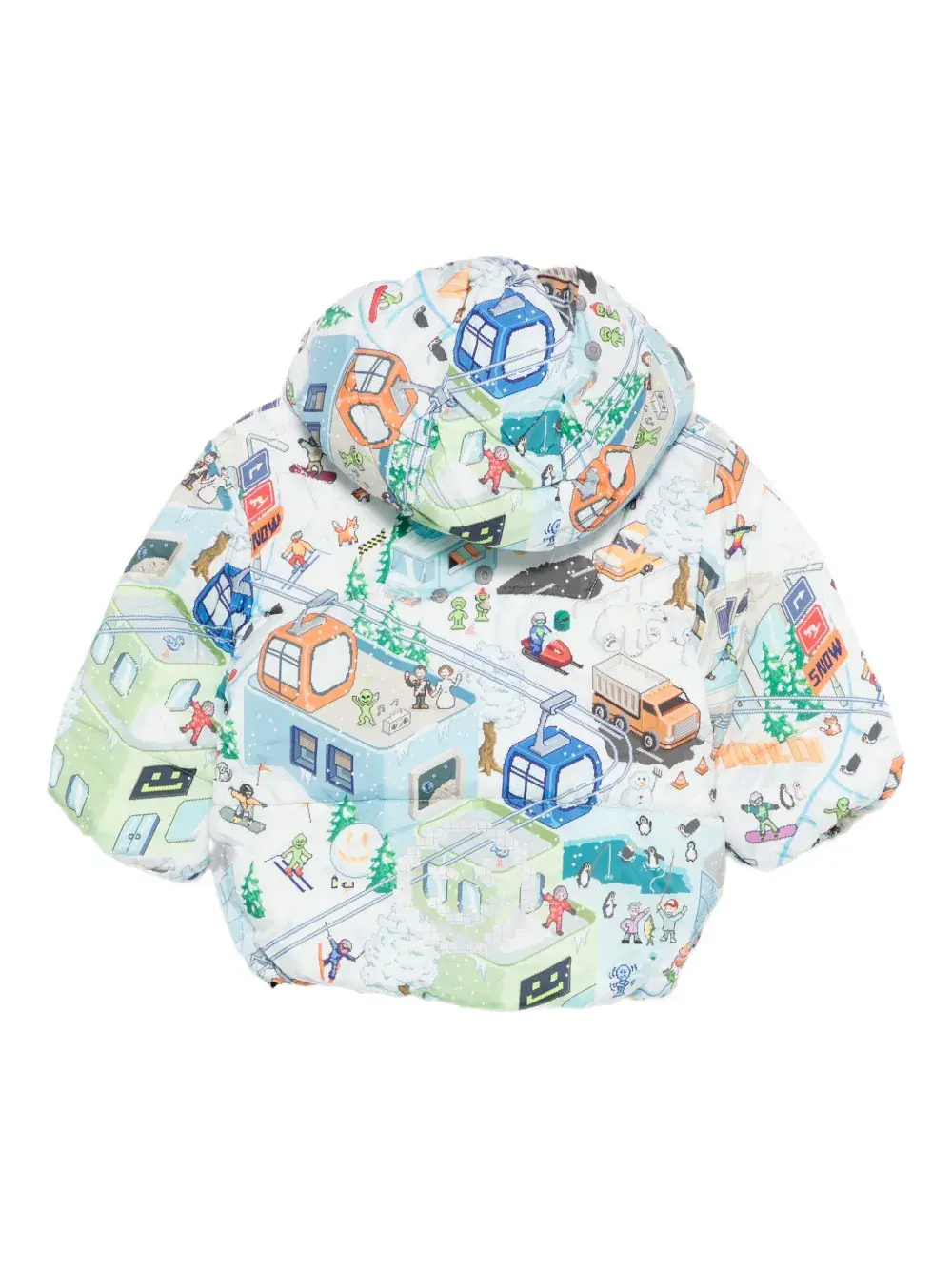 Белая стеганая куртка с графическим принтом и застежкой-молнией