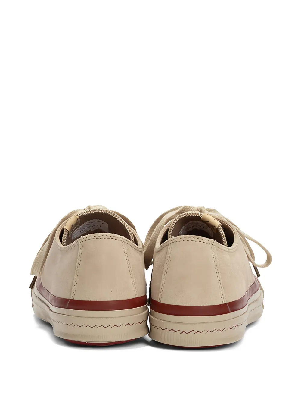 Верх из замши песочного цвета, шнуровка, контрастная отделка, резиновая подошва, низкий верх