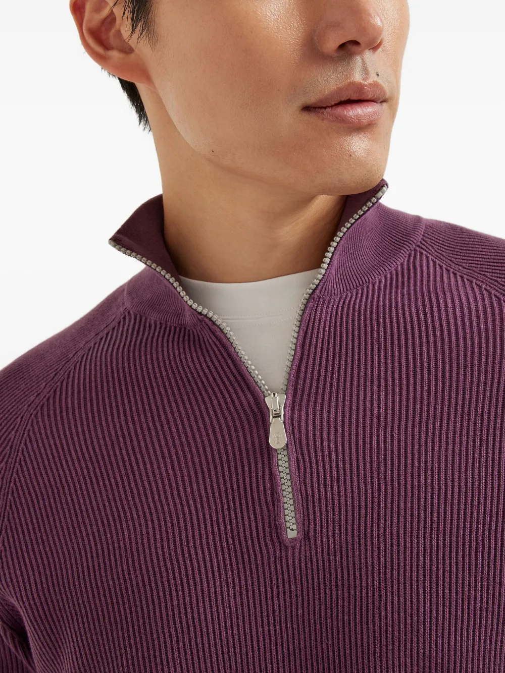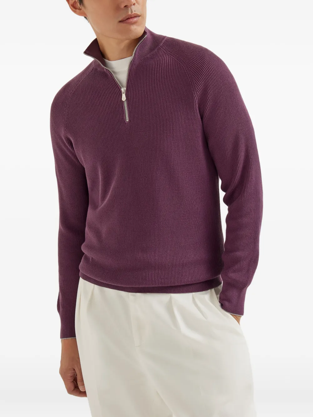 Вязаный хлопковый свитер Brunello Cucinelli, фиолетовый