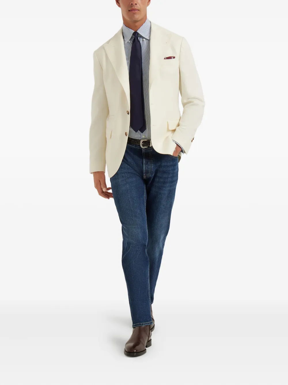 Рубашка из полосатого поплина Brunello Cucinelli, синий