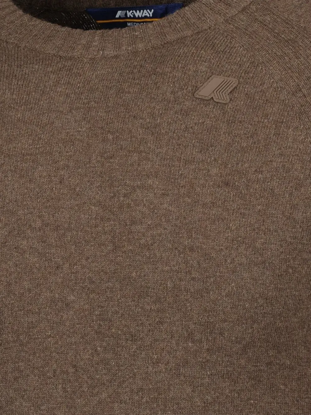 Коричневый круглый вырез длинные рукава деталь с логотипом эластичные манжеты и нижний край