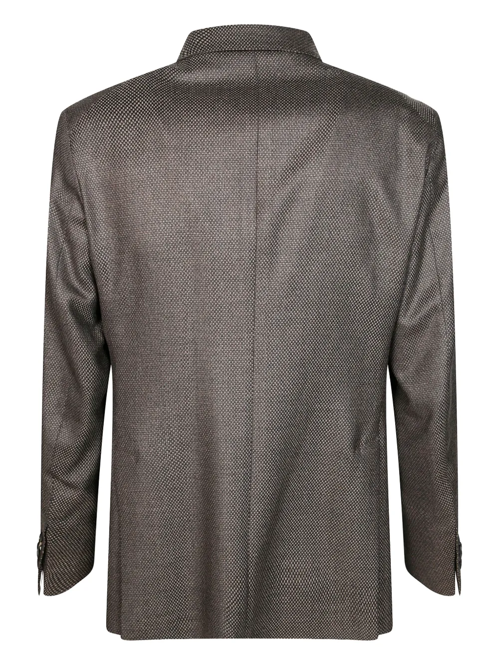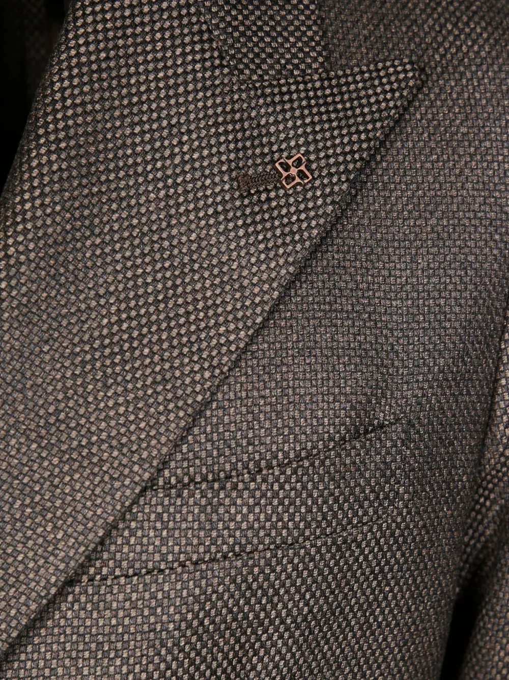 Коричневый пиджак с текстурным эффектом, лацканами с острыми концами, застежкой на пуговицы, нагрудным прорезным карманом