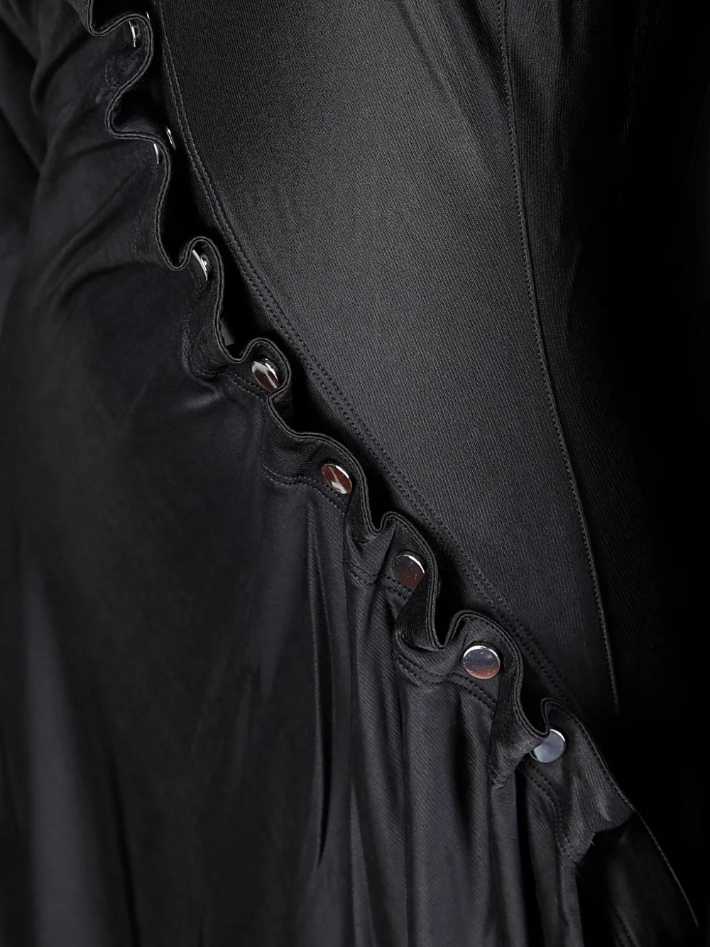 Черные рукава из джерси, застежка на кнопки, драпировка, асимметричный подол, длинные рукава