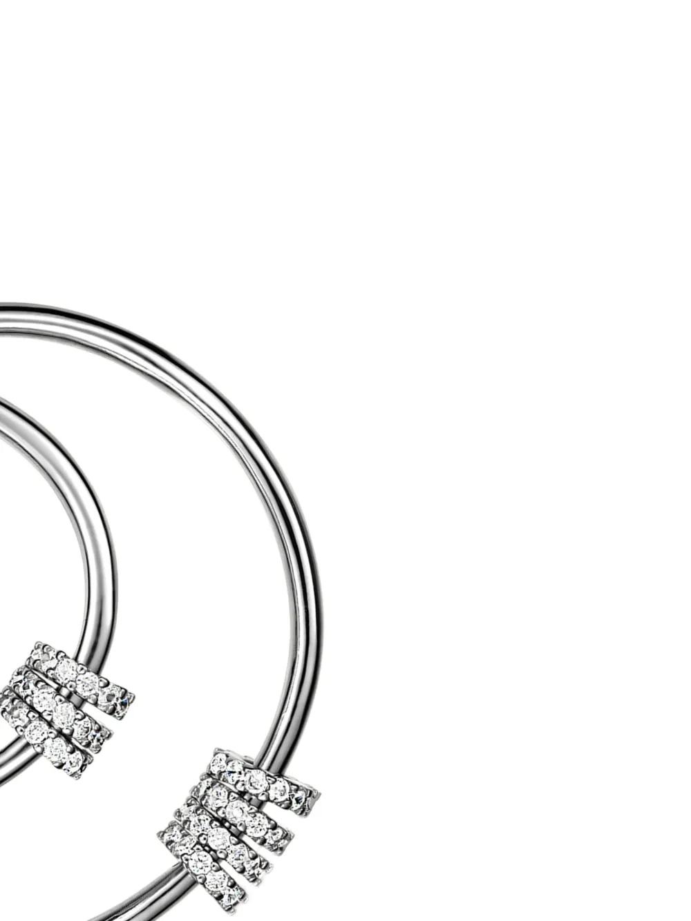 Серьга из металла серебристого оттенка, с дизайном в виде кольца, украшенная камнями, с покрытием. Это одиночная серьга.
