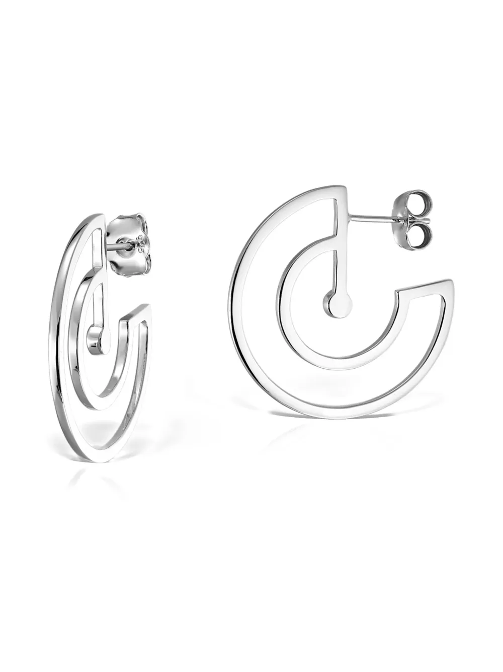 Серебристый оттенок, дизайн в виде колец, покрытие, застежка-гвоздик. Эти серьги поставляются в паре.