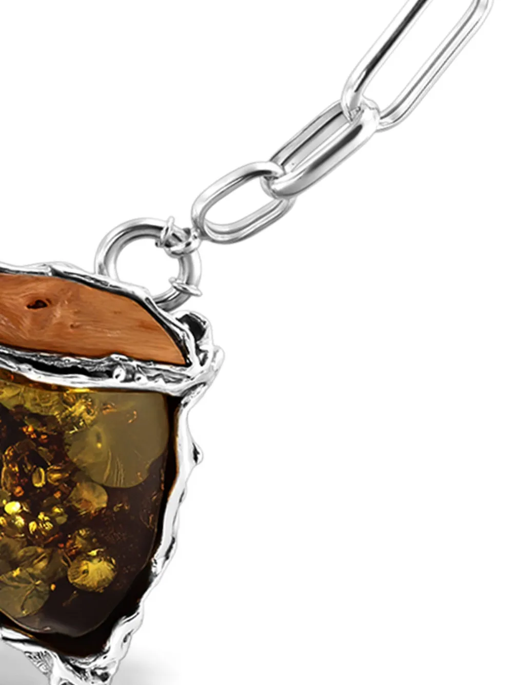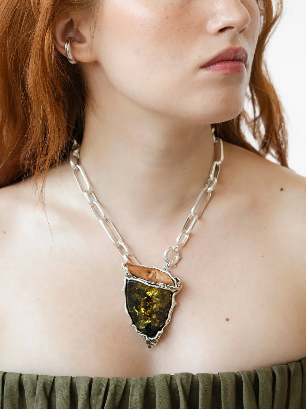 Кулон на цепочке с камнем OBSIDIAN, серебряный