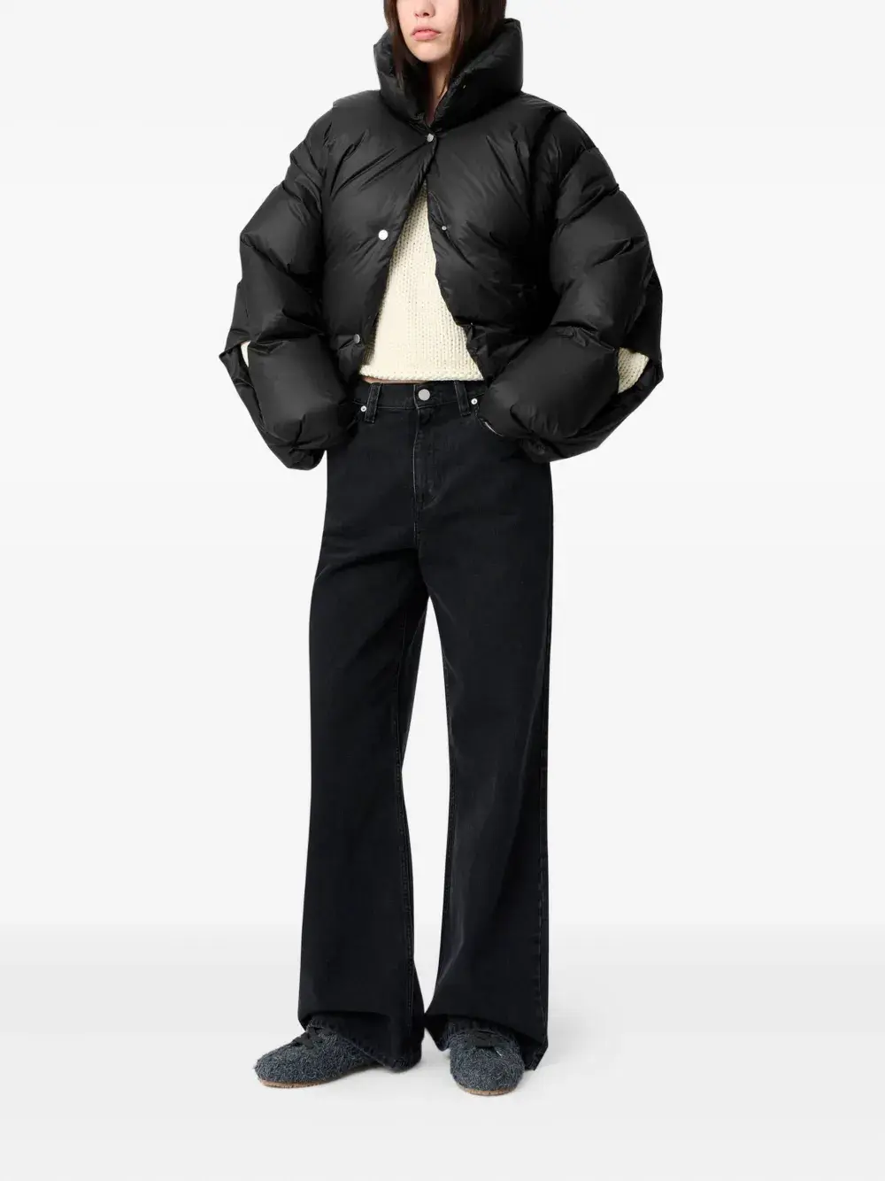 Черная куртка с высоким воротом, длинными рукавами и стеганым дизайном