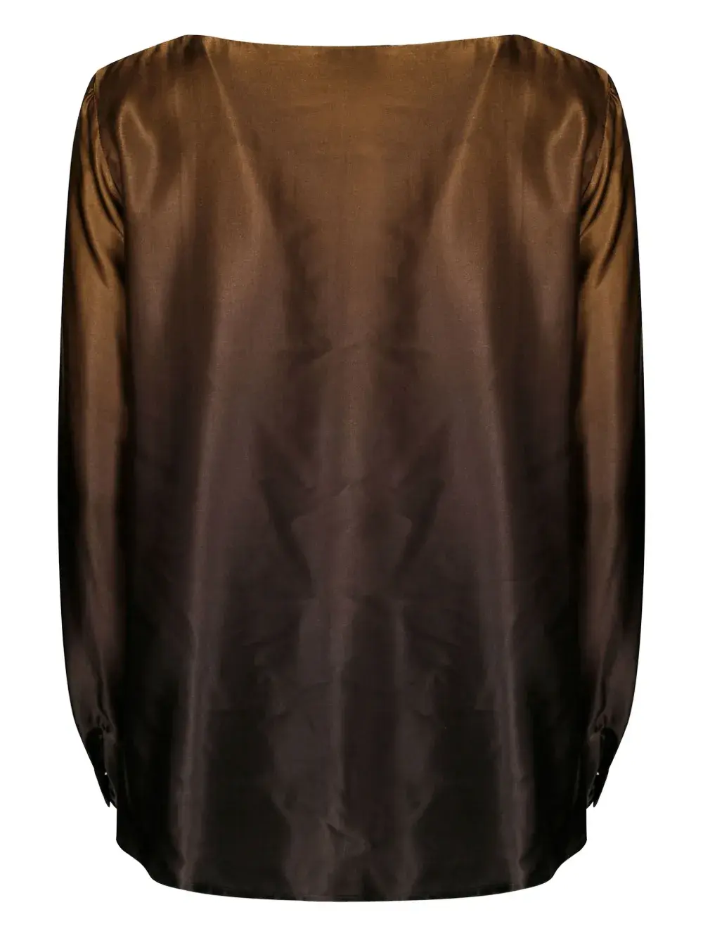 Коричневый, длинные рукава, манжеты на пуговицах, вырез лодочкой