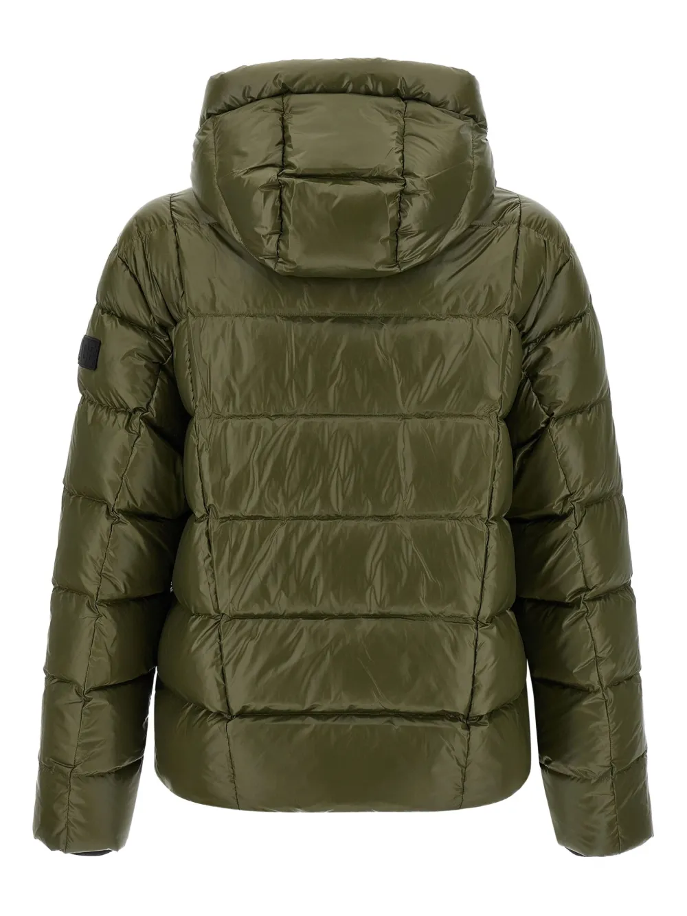 Зеленый высокий воротник, регулируемый капюшон, силиконовая нашивка с логотипом, застежка-молния спереди, ветрозащитные манжеты