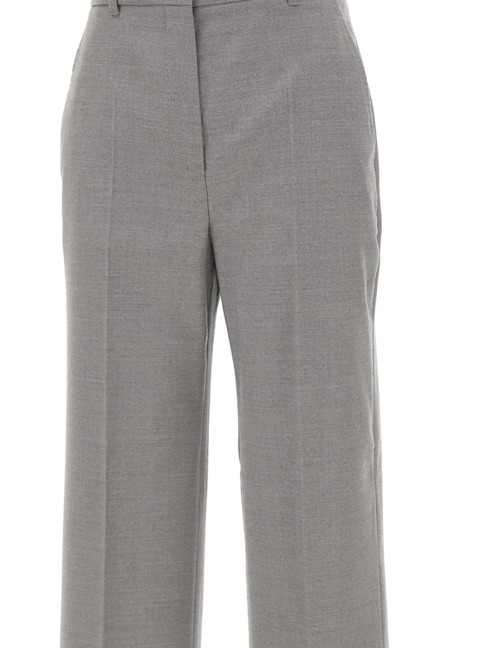 Серый шерстяной фланелевый материал, завышенная талия, шлевки для ремня, боковые карманы, стрелки спереди
