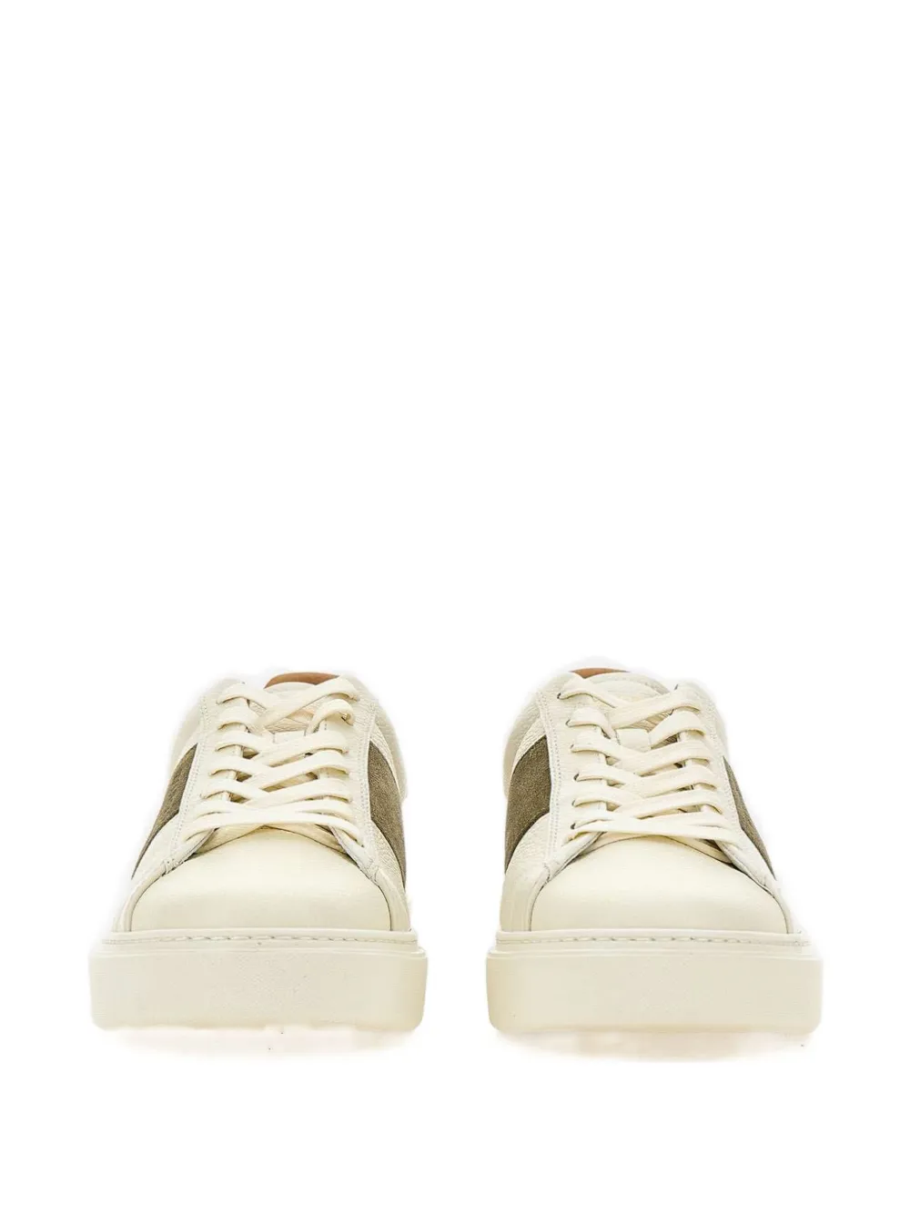 Кремовая тисненая кожа, вставки из замши, резиновая подошва, логотип