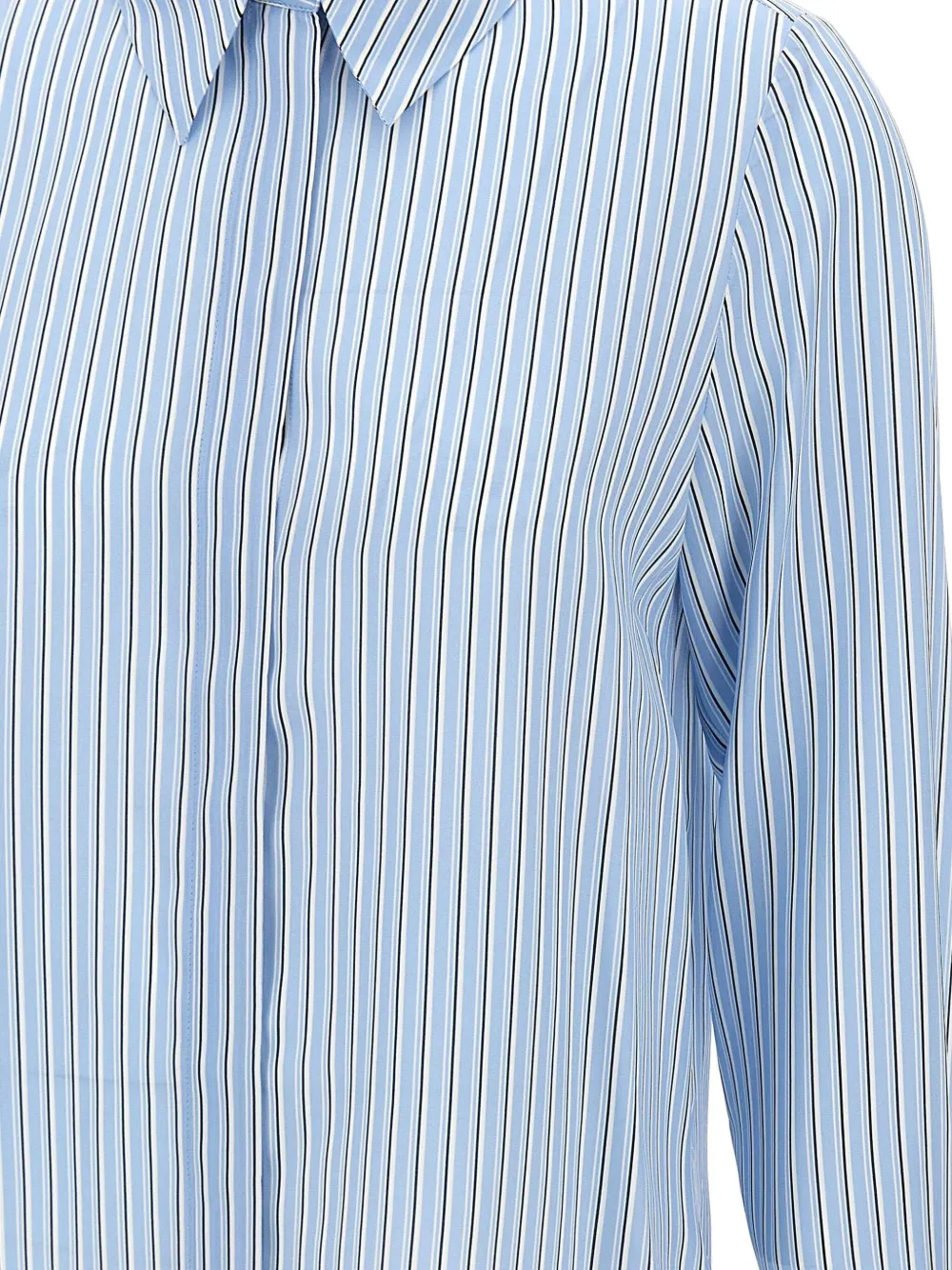 Голубая рубашка в вертикальную полоску с длинными рукавами из шелка